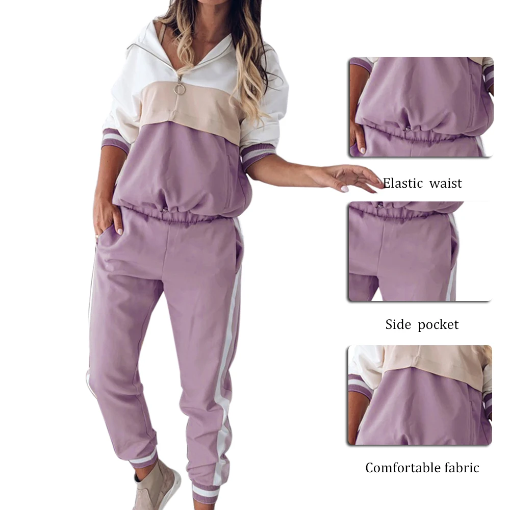 Спортивный костюм женский, с капюшоном и длинными рукавами, в стиле пэчворк