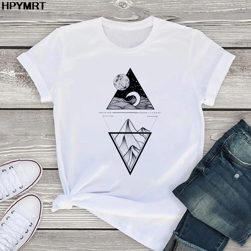 Летние топы; Эстетическая Футболка с принтом горы; Женская Винтажна...