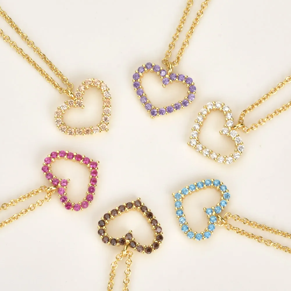 Цепочка с подвеской в виде цветного радужного сердца, из серебра 925 пробы