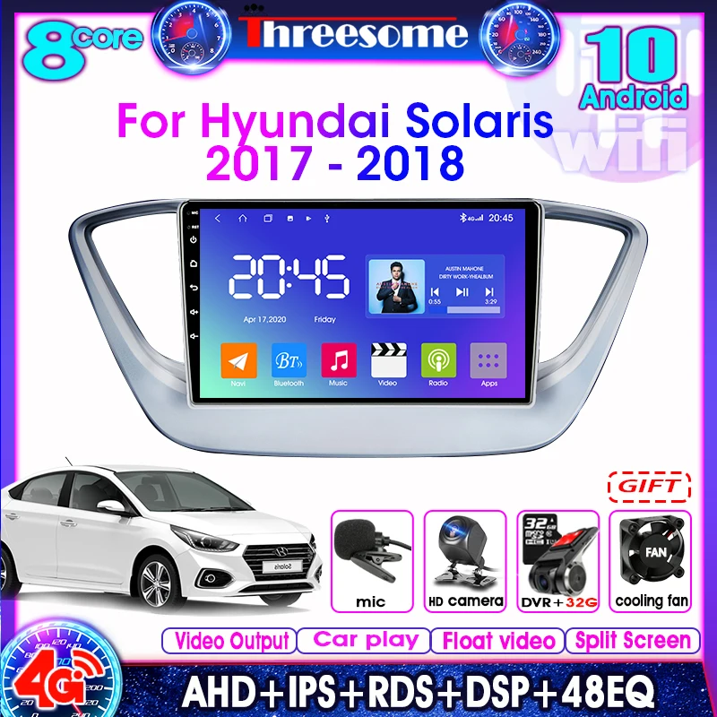Автомагнитола 2DIN Android 2017 для Hyundai Solaris Verna 2018-4 + 64 Гб GPS 4G + WIFI навигация DSP RDS 48EQ мультимедийный видеоплеер