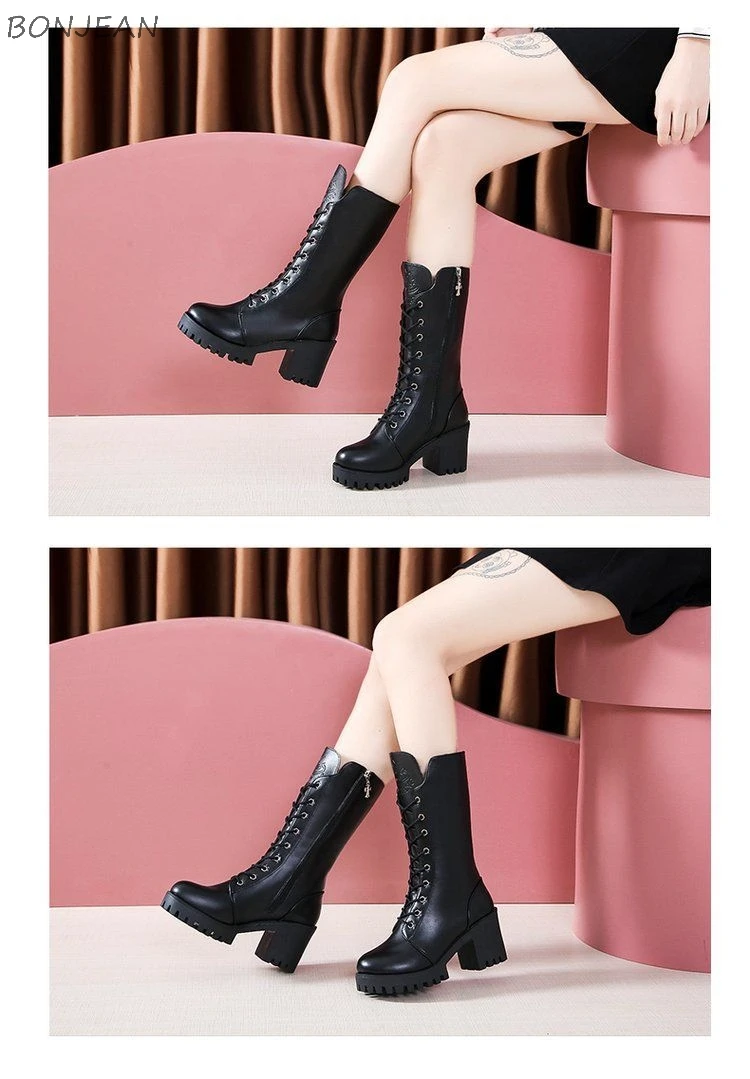 Женские ботинки со шнуровкой, теплые, зимние, водонепроницаемые, до середины икры, Нескользящие, размер 35-41, обувь супер звезда