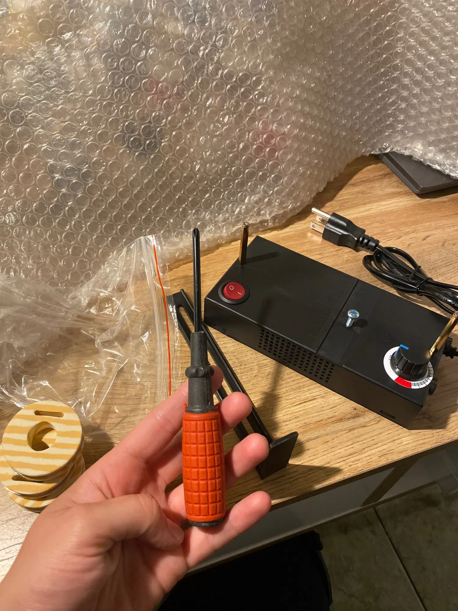 Прибор был доставлен на два дня раньше объявленного срока курьером,все в целости и сохранности,винт закрутить до конца этой отверткой мне не удалось,побоялась сильно надавливать, нужно винт покороче ,прибор работает,но он гудит,я не знаю, так должно быть или мне повезло,а так аккуратный и недорогой прибор.