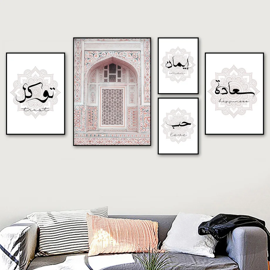 Тадж-Махал, мечеть, арабская каллиграфия, скандинавский плакат, исламское искусство, печать, холст, живопись, мусульманский декор, картинки для гостиной