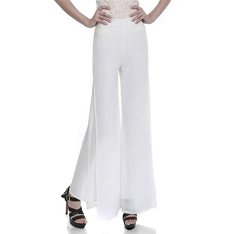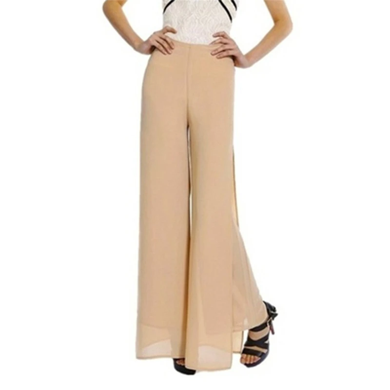 Женские шифоновые брюки, однотонные тонкие длинные брюки макси с высокой талией, лето, размера плюс