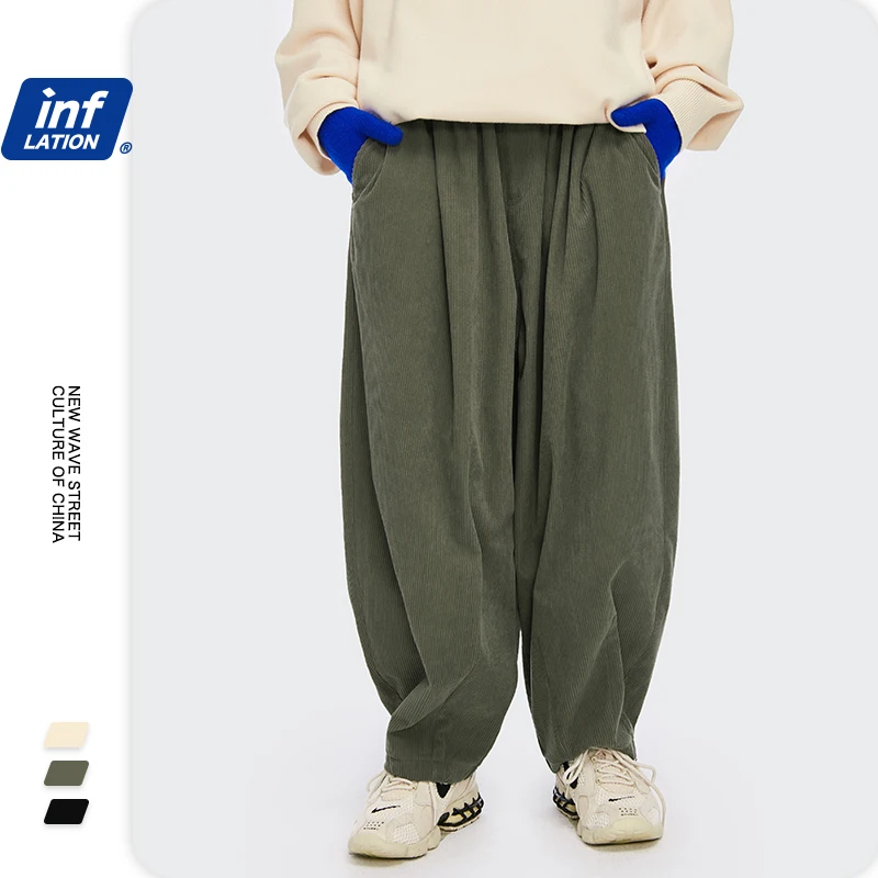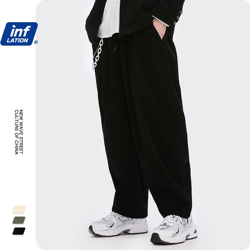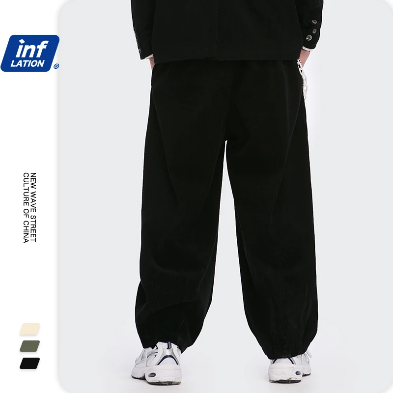 Брюки мужские вельветовые в стиле Харадзюку, винтажные свободные прямые штаны, повседневные штаны, черные брюки для мальчика, 2020 W, осень 3269
