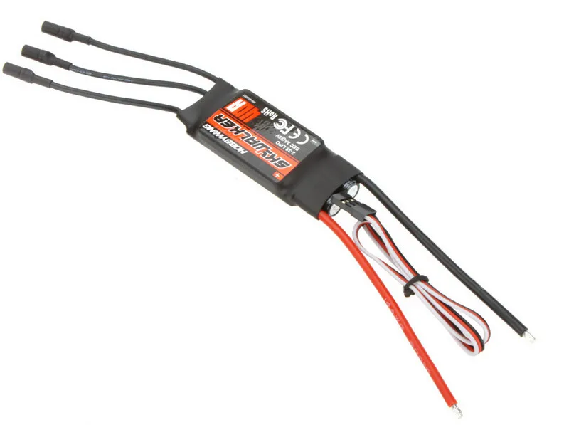12A:Непрерывный ток 12А, короткий ток 15А (менее 10 секунд)Вход питания: две литиевые батареи или 5-6 NiMH / NiCd аккумуляторBEC выход: 5 В @ 1A (режим линейного регулятора-Линейный режим)Частотный диапазон сигнала дроссельной заслонки (частота обновления): 50 Гц-432 ГцМаксимальная скорость: 2-полюсный двигатель 210000 об/мин, 6-полюсного мотора 70000 об/мин, 12 полюс Мотор 35000 об/минРазмер: 38 мм (длина) * 18 мм (ширина) * 6 мм (В)Вес: 9 г15а:Характеристики:Постоянный ток: 15аПиковый ток (10s): 20ABEC: 5 В 2 АЛипо: 2-3SВес нетто: 14 г20А:Модель: Skywalker-20AНепрерывный ток: 20AТок разрыва (>10s): 25AРежим BEC: линейныйBEC выход: 5V2AВыходная мощность BEC: 5 сервоприводов (2S Lipo) / 4 сервопривода (3S Lipo)Батарея: 2-3S (Lipo) / 5-9 ячеек (NiMH)Вес нетто: 19 гРазмеры (Д x Ш x В): 42x25x8 ммДлина кабеля: 25 смПосылка Размер: 12,5*11*2,5 см30A:Постоянный ток: 30AПиковый ток: 40A(10s)Напряжение: 2-3S lixxBEC: ДаBEC выход: 5 В/2 АЦвет: черныйПрограммируемый: ДаРазмер: 70*25*8 мм (не включая длину кабеля)Вес нетто: 38 г40A:Модель: Skywalker-40AНепрерывный ток: 40AТок разрыва (>10s): 55AРежим BEC: линейныйBEC выход: 5V2AВыходная мощность BEC: 5 сервоприводов (2S Lipo) / 4 сервопривода (3S Lipo)Батарея: 2-3S (Lipo) / 5-9 ячеек (NiMH)Вес нетто: 35 гРазмеры (Д x Ш x В): 68x25x8 мм50A:Непрерывный выход: 50AТок разрыва: 60A @ 10SВходная мощность: 2-4S Lixx/5-12S Nixx5 В/3 А BEC выход, режим переключенияЧастота обновления: 50 Гц-432 ГцМакс. Скорость вращения: 2-полюсный 210000 об./мин.; 6-полюсный 70000 об./мин., красный/зеленый/синий 12-полюс 35000 об./мин.Размер: 68*25*12 ммВес: 43 г60A:Наименование товара: Hobbywing SkyWalker 60A UBEC ESCПостоянный ток: 60AТок разрыва (>10s): 80AРежим BEC: режим переключенияBEC выход: 5 В при 3 АБатарея: 2-6 ячеек Lipo, или 5-18 ячеек NiHHЧастота обновления: 50 Гц-432 ГцРазмеры: 77x35x14 ммВес: 63 гМаксимальная скорость: 210000 об/мин (2 полюса двигателя), 70000 об/мин (6 полюсов двигателя), 35000 об/мин (12 полюсов двигателя)80A:Название товара: Скайуокер 80A UBECТип: бесщеточный ESC, стандартное напряжениеCont./Пиковый ток: 80A/100AВход: 2-6S LiPo,5-18s Ni-MHBEC Выход: переключатель режима -- 5V,5AВходные провода: Red-12AWG-150mm * 1,Black-12AWG-150mm * 1Выходные провода: Black-14AWG-100mm * 3Входные разъемы: нетВыходные разъемы: нетПрограммирование ESC через: передатчик, светодиодный программный карта, программный порт (программный/Дроссельный провод)Обновление прошивки: не поддерживаетсяРазмер: 86.0x38.0x12.0ммВес: 82 г