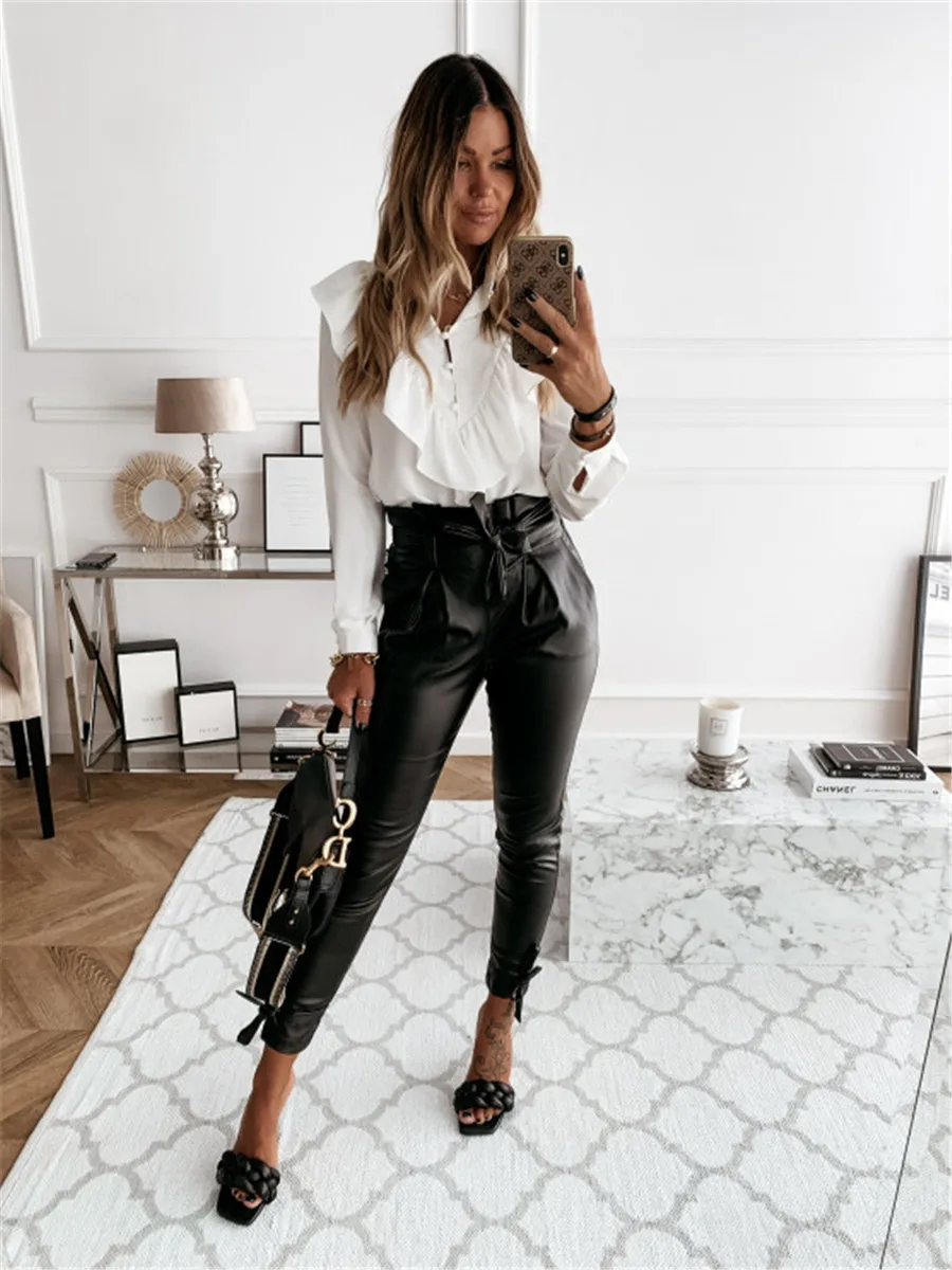 Женские брюки на молнии с высокой талией, кожаные штаны, уличная одежда, эстетические брюки, Mujer Pantalones Calas Mulher Spodnie женские штаны