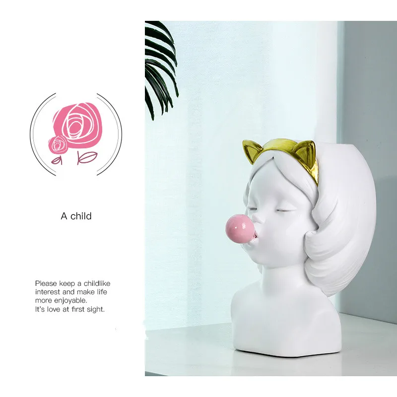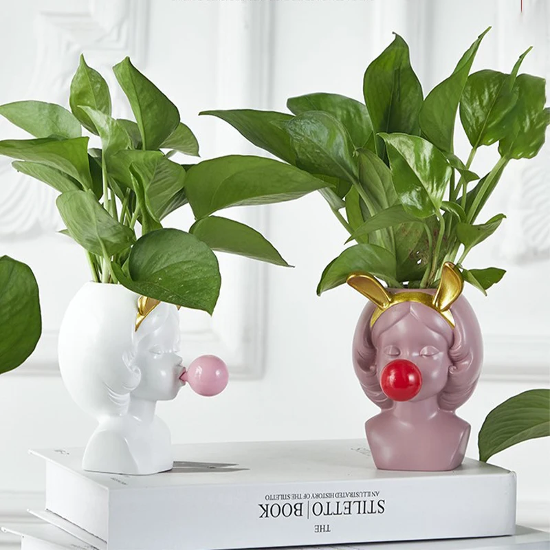 Кавайная ваза, домашний декор 2021, Скандинавская полимерная ваза, милая девушка с головой человека, жвачка для пузырей, цветочный горшок, современное художественное украшение, креативный цветок
