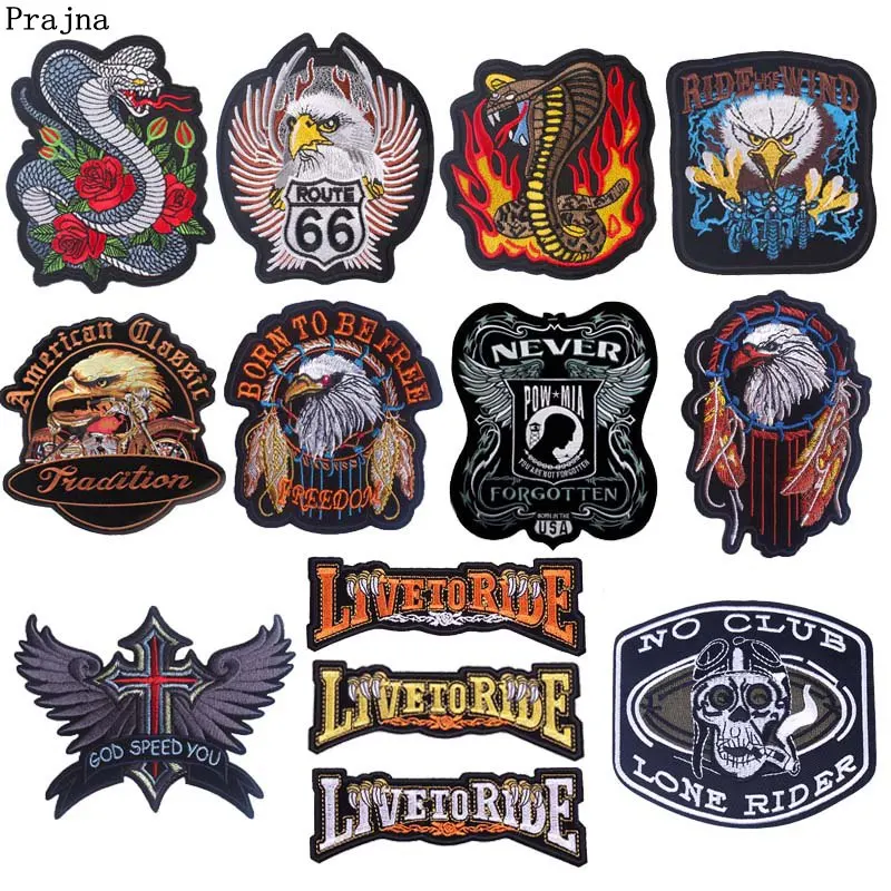 Нашивки в стиле панк Prajna Live to Ride, вышитые нашивки с черепом для одежды, байкерские нашивки с Орлиной лапой, нашивки для куртки, джинсов, в полоску