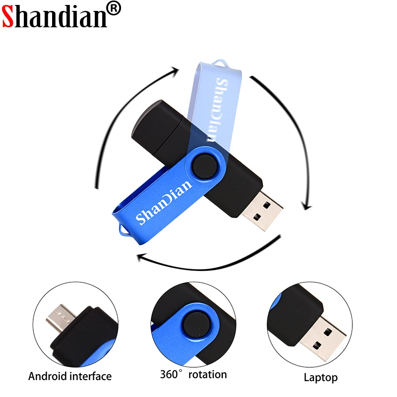 SHANDIAN OTG USB флеш-накопитель, металлический флеш-накопитель, 2,0, 64 ГБ, 32 ГБ, 4 Гб, флешка, Внешняя память, карта памяти, 16 ГБ, 128 ГБ, 8 ГБ, Micro USB