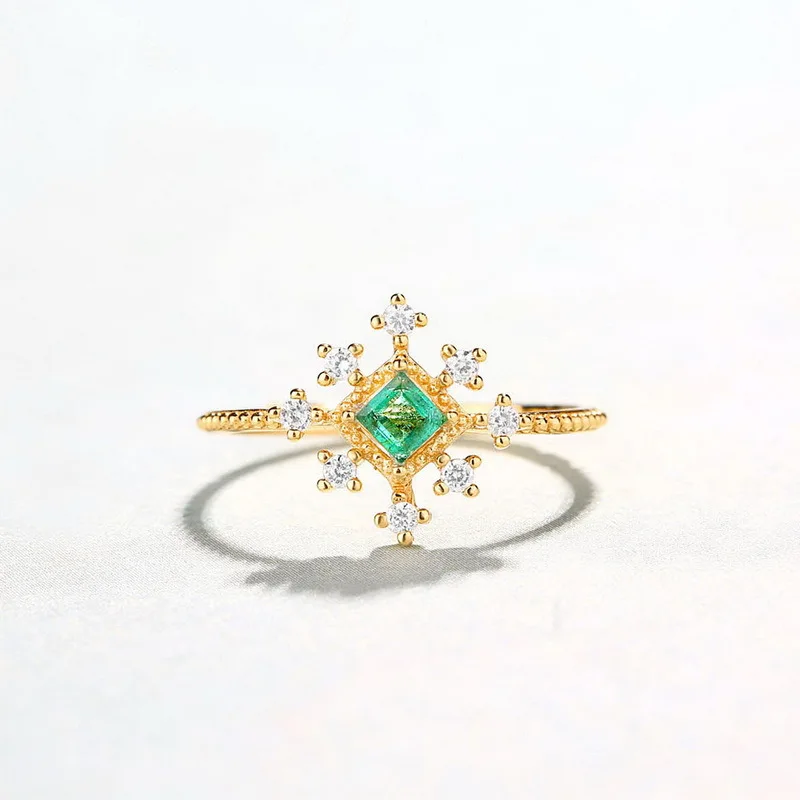 Роскошные трендовые кольца с зеленым цирконием Anomokay, кольца золотого цвета с объемным белым цирконием, один размер, Настоящее серебро 925 пробы, вечерние кольца