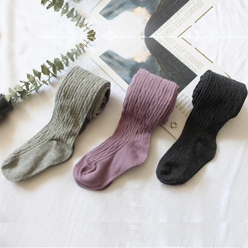 Колготки для девочек, зимние Хлопковые вязаные чулки, Детские однот...