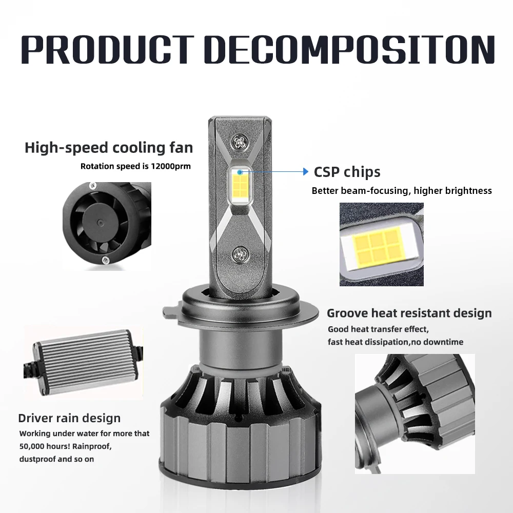 Светодиодсветодиодный лампы для автомобильных фар roadsun Mini H4 H7 Canbus светодиодный H1 H11 HB3 9005 9006 CSP chip 50 Вт 14000LM 6000K 12 В, Автомобильные фары