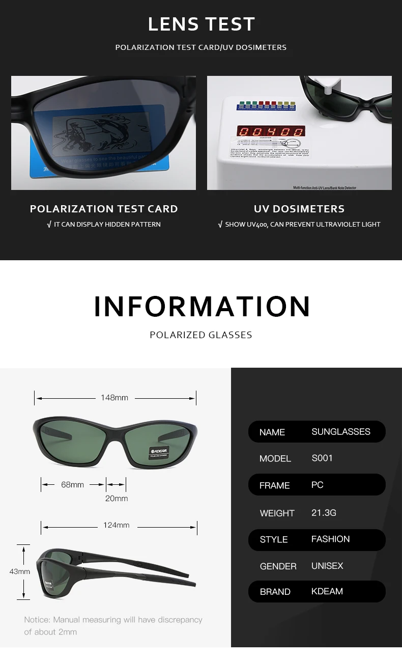 Солнцезащитные очки KDEAM поляризационные, для мужчин и женщин, для занятий спортом на открытом воздухе, с защитой от ветра