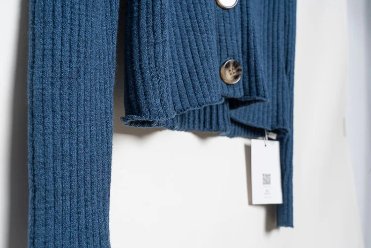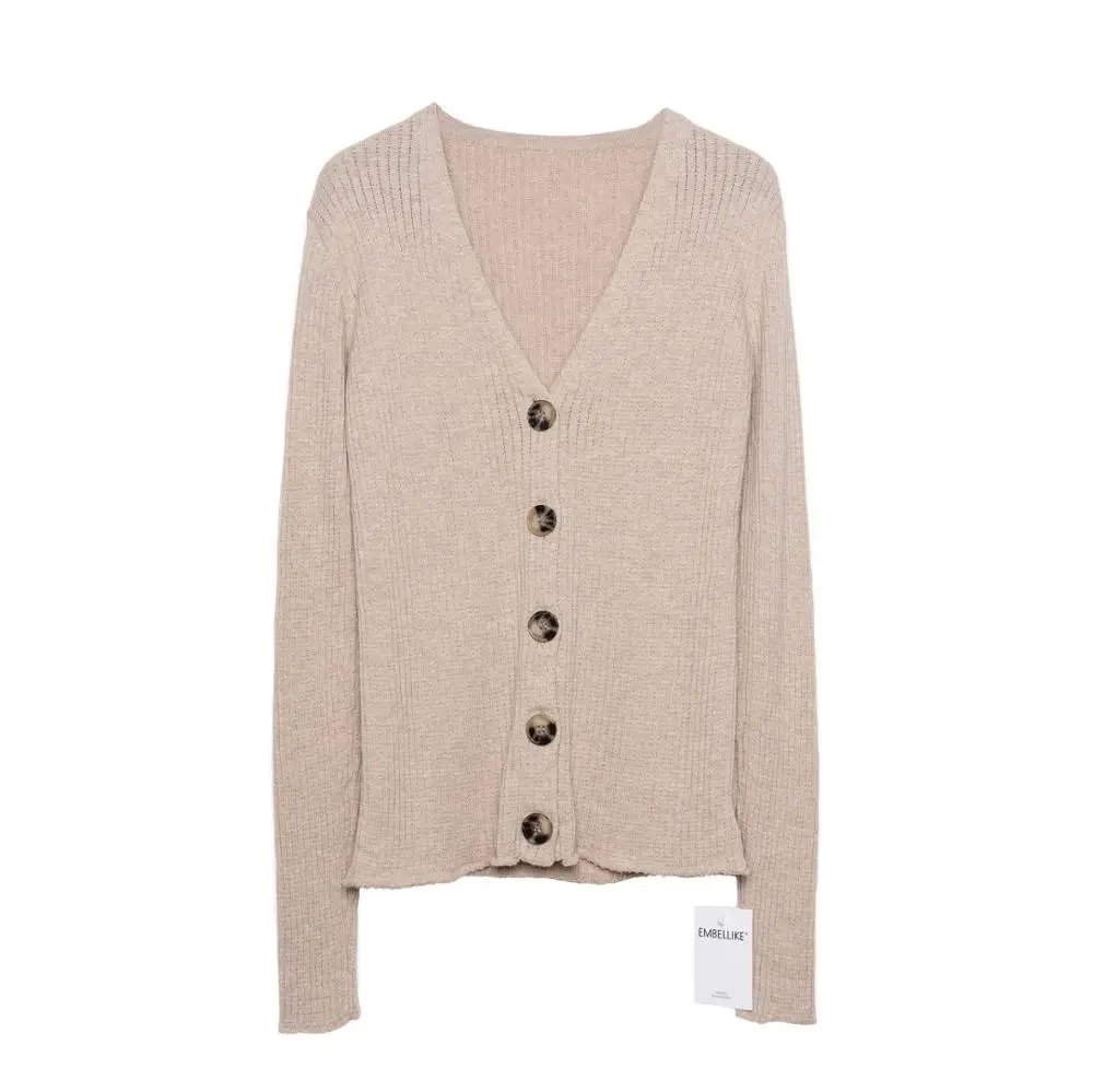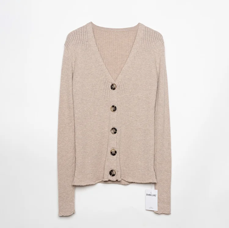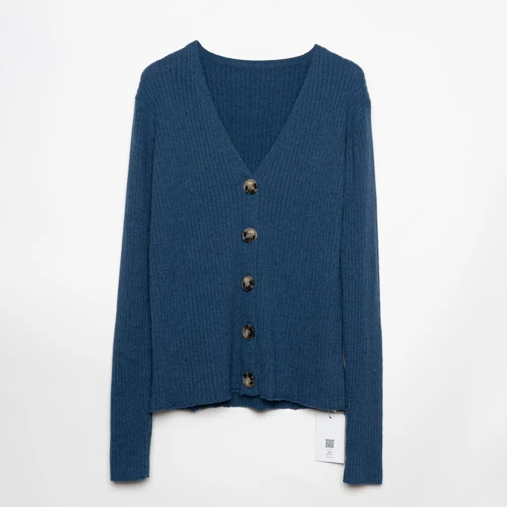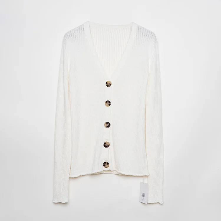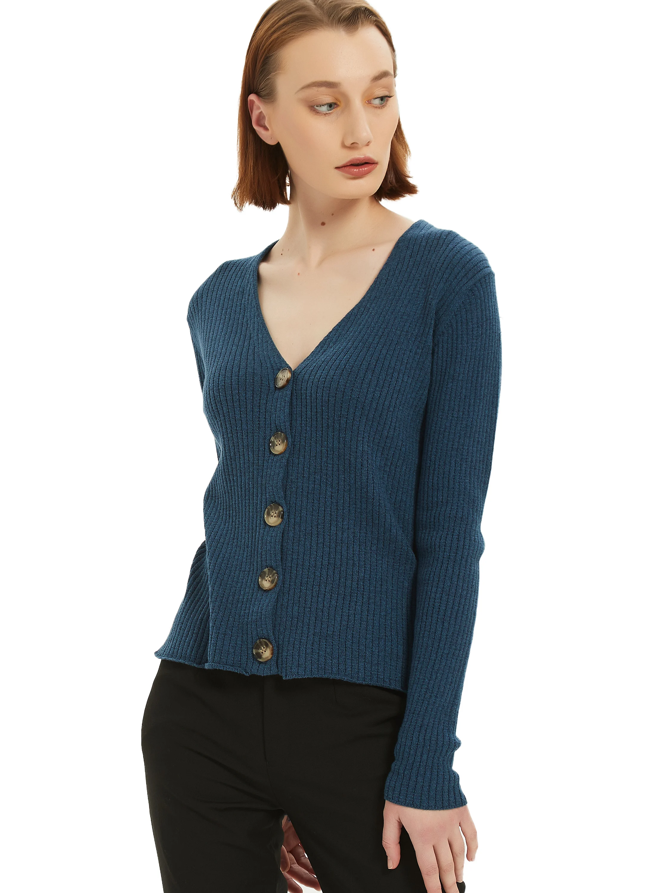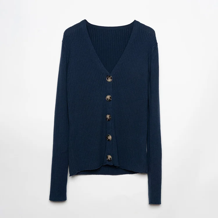 Кардиган женский хлопковый трикотажный в рубчик, с V-образным вырезом