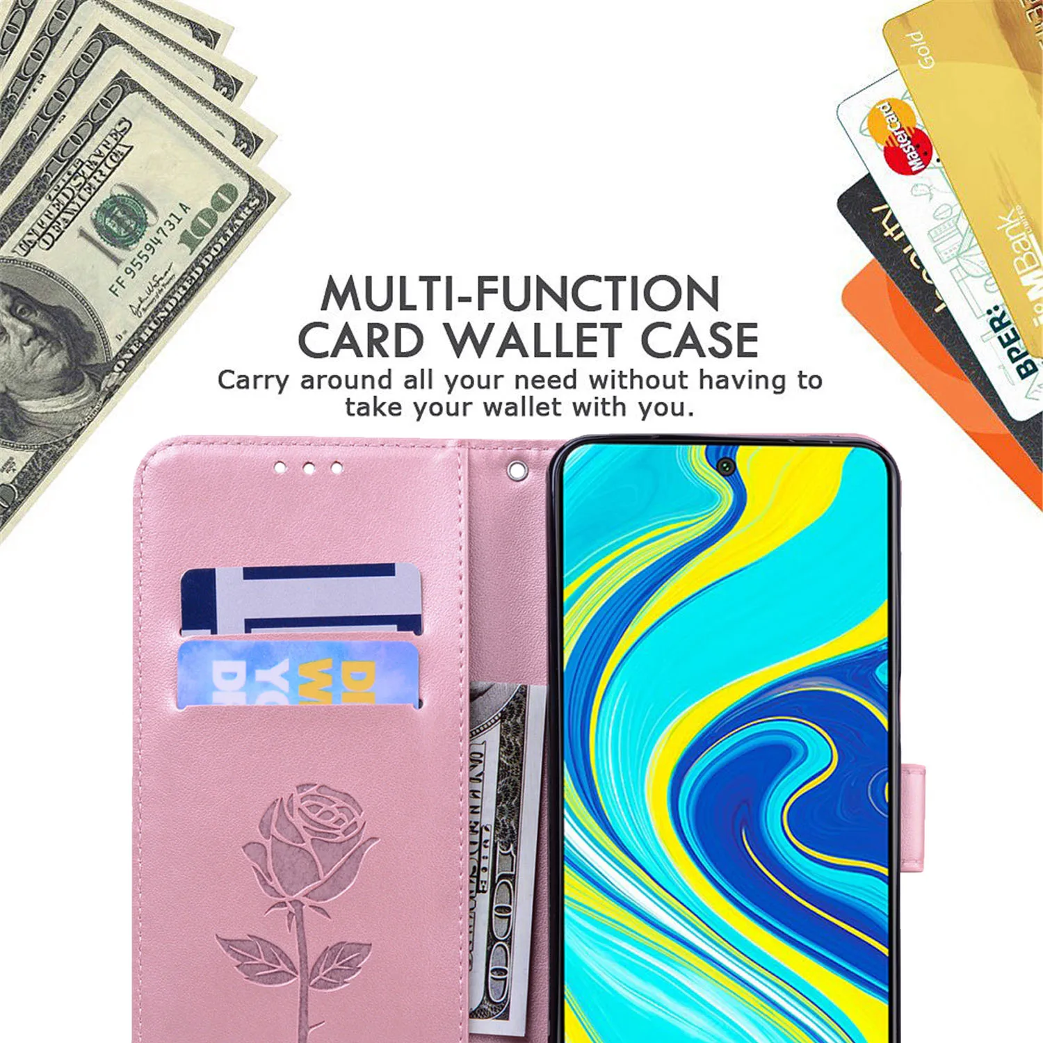 ХарактеристикиEmbossed Rose Flower Flip Stand Leather Wallet Phone Bag Case Cover