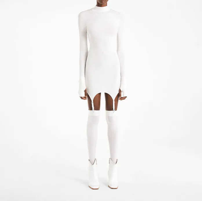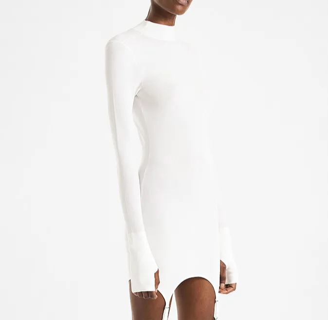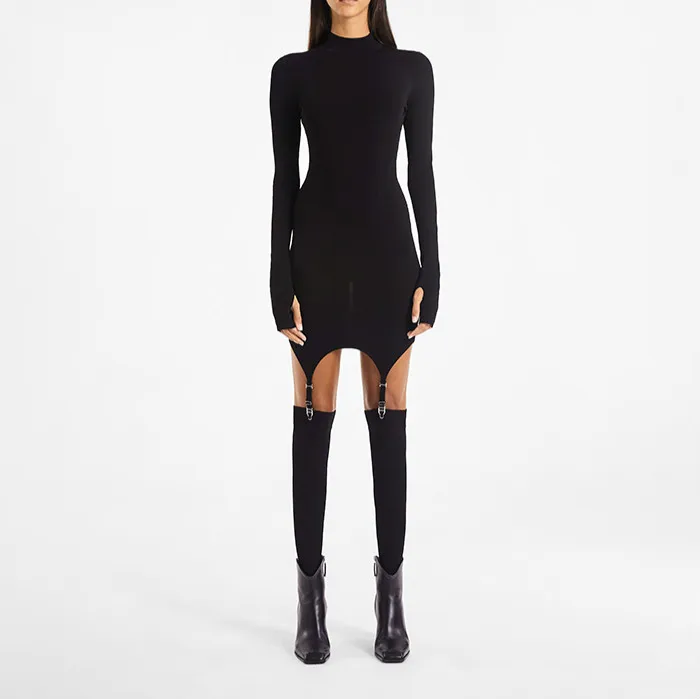 Сексуальное женское облегающее платье с длинным рукавом, новое осеннее модное облегающее мини-платье со стоячим воротником и чулками, Дамское Платье