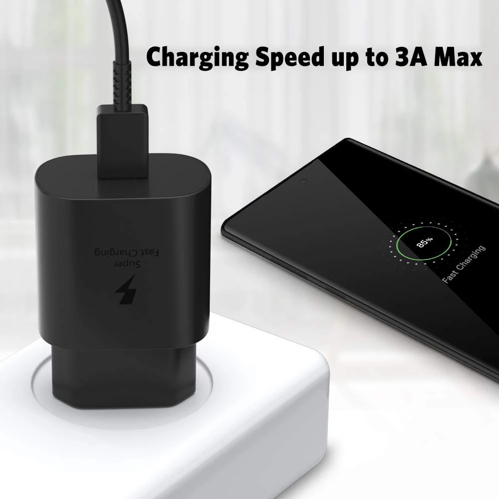 Адаптер для Samsung Note 10, для путешествий, Сверхбыстрая зарядка, 2,0 (25 Вт), кабель USB Type-cType -C (3 а), оригинальное быстрое зарядное устройство, черныйбелый