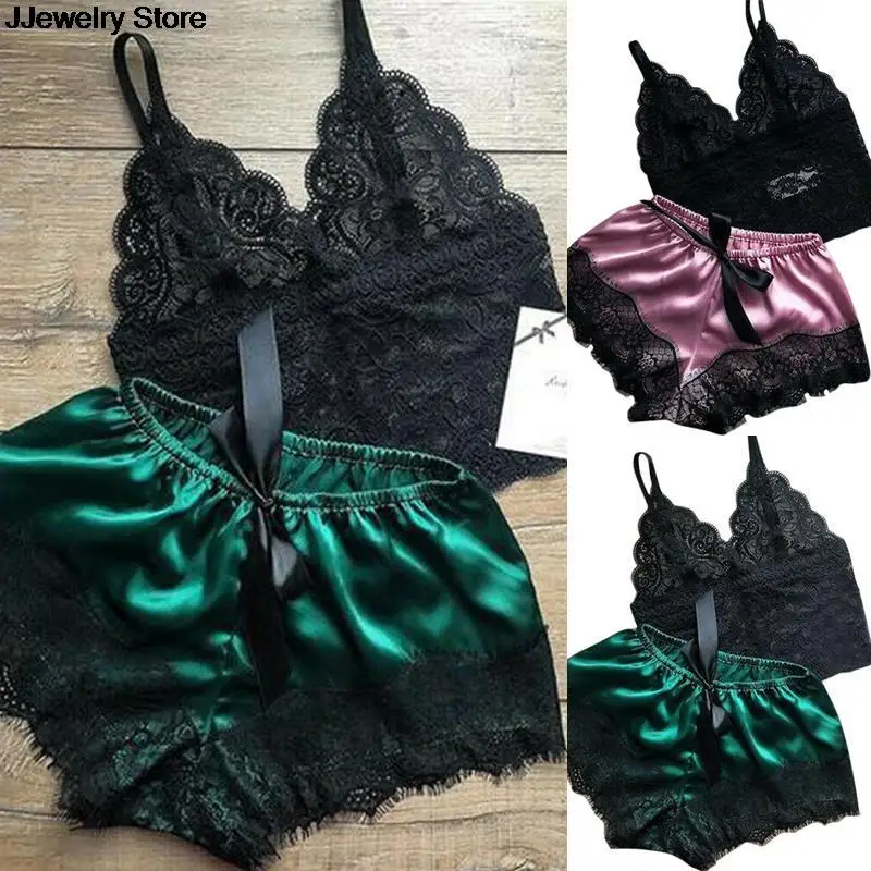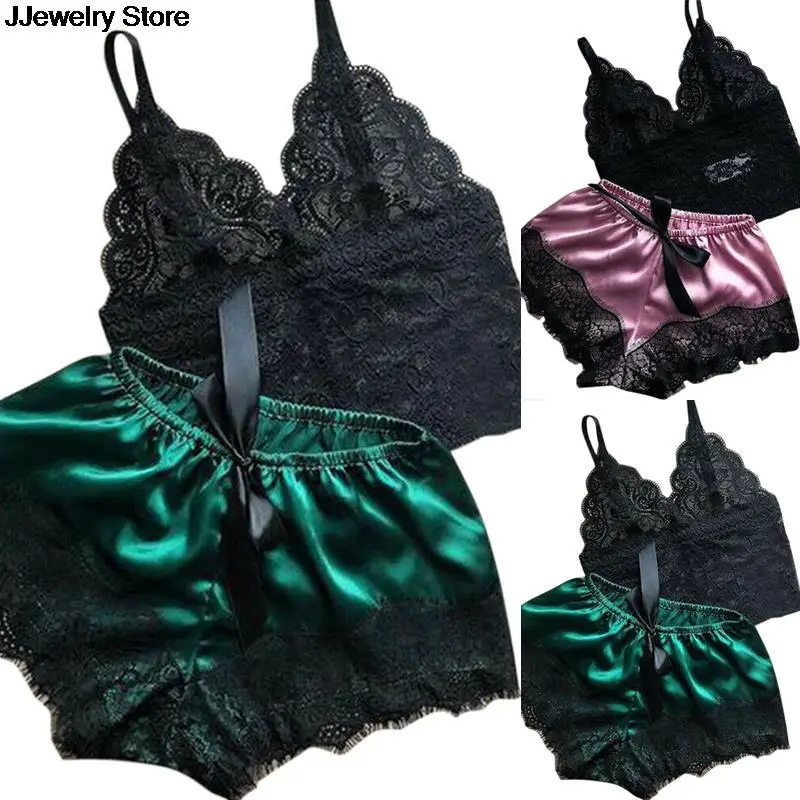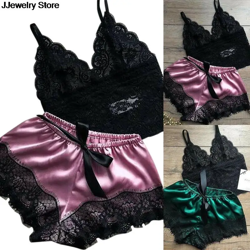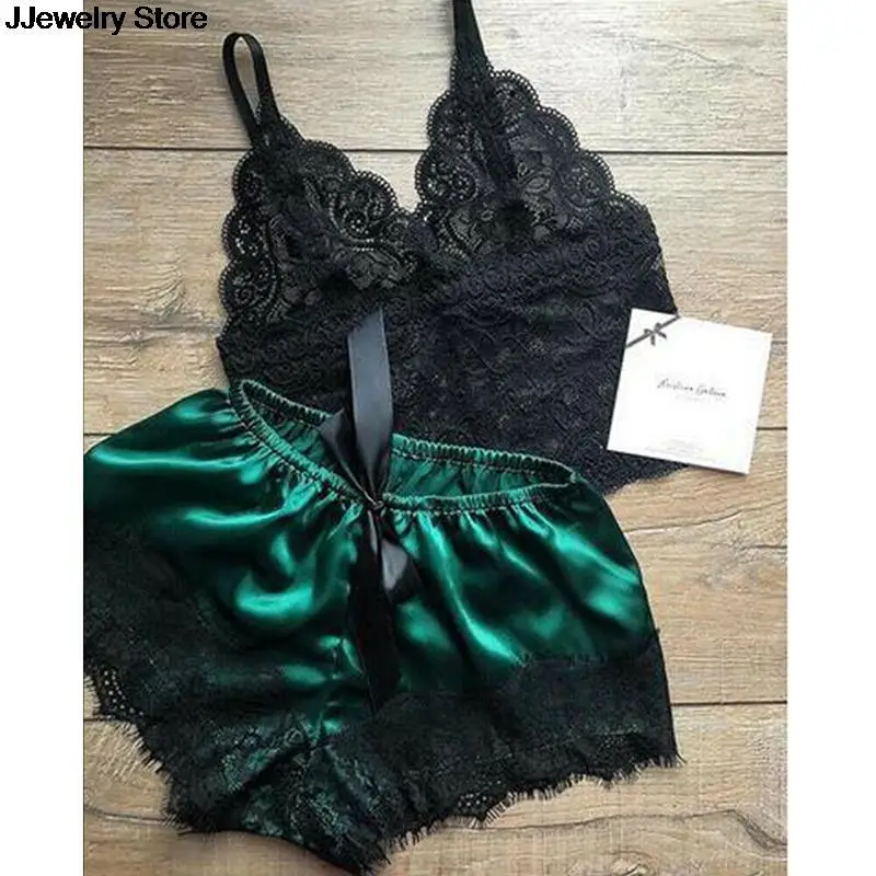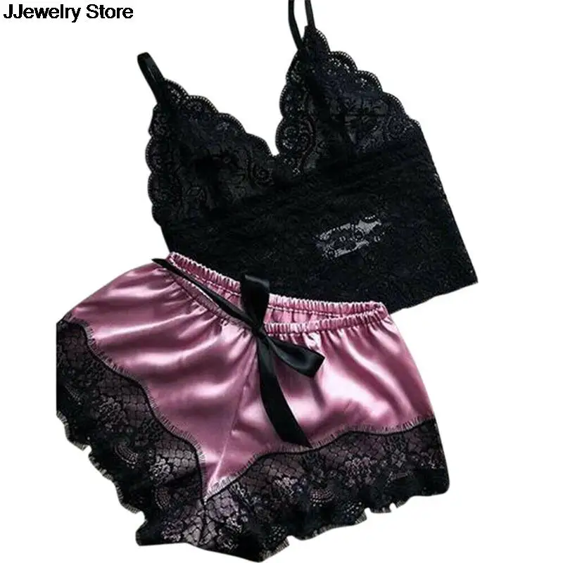 Женский комплект из топа и шорт, 1 комплект, кружевная одежда для сна, женское белье, пижама, ночная рубашка