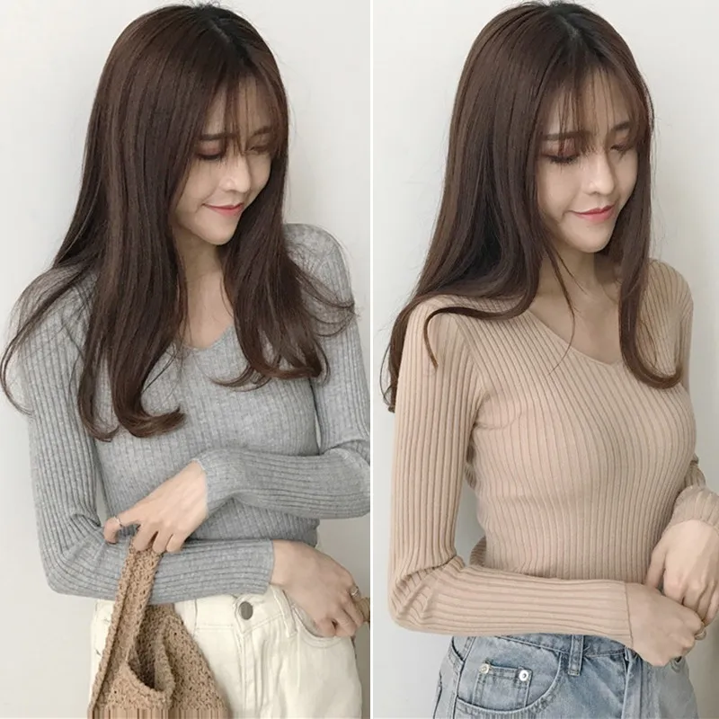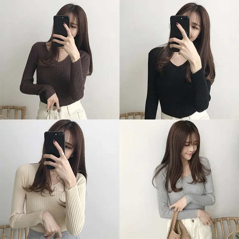 Slim Fit для женщин Модные Повседневные свитера с v-образным вырезом Женские однотонные зимние ботинки футболка одежда с длинными рукавами рубашки для мальчиков осенняя одежда полный
