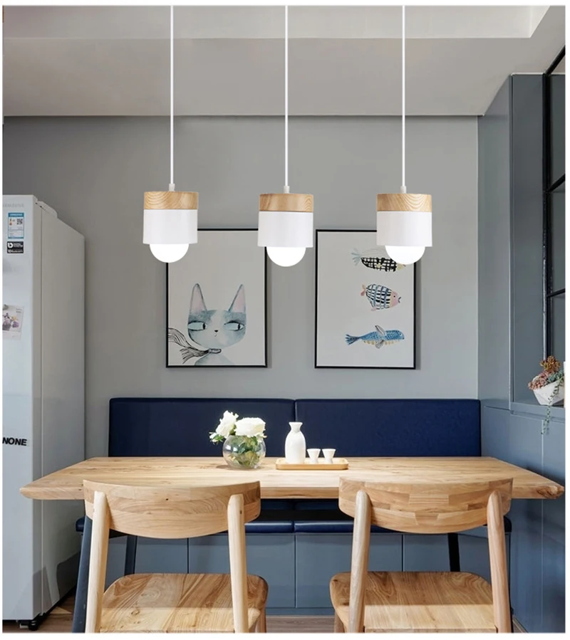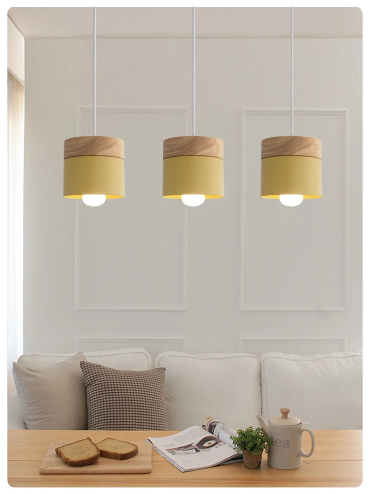 Современные Деревянные железные подвесные светильники E27 в скандинавском стиле, цветные минималистичные Светодиодные комнатные лампы для гостиной, кофейни, спальни