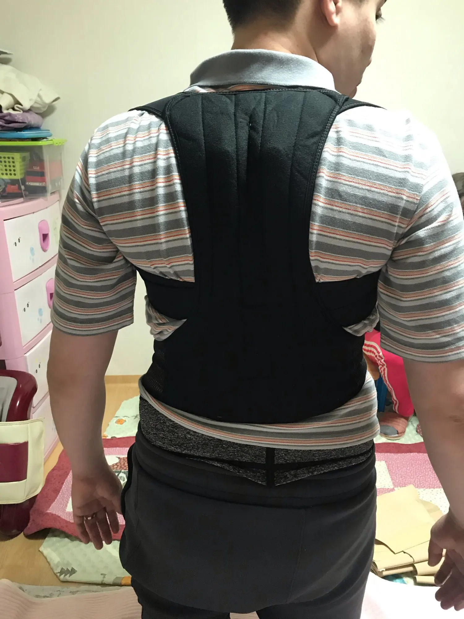 저는 자세 교정되는 느낌은 없었는데 앉아있거나 서 있을 때 제 근육을 사용하지 않아서 편한 것 같은 느낌이 있었어요 어깨가 좀 굽은 친구한테 좋다고 입어보라고 했는데 자기는 어깨랑 등이 너무 아프대요(좀 둥글게 말린 어깨) 근육이 짧아져서 늘어나느라 아픈가봐요(스트레칭 같은 원리?!) 암튼 배송도 안전하게 잘 오고 재질도 튼튼하고 겨울이라 한겹 더 입는 느낌이라 따뜻하고 봄까지도 입어도 될 것 같아요. 맘에 들어서 몇개 더 사서 가족들 나눠줄까합니다. 참고로 s샀는데 허리가 좀 커요(26입어요, 가슴 밑 둘레 70) 그래서 안으로 많이 당겨입으면 부직포 부분을 넘어가서 뜯어져요 앉으면 배 나오니까 좀 크게 입으면 돼서 별로 문제는 안돼요 암튼 퀄리티 좋고 괜찮아요 가성비 굿 구매 성공해서 맘에 듭니다.