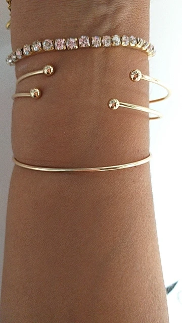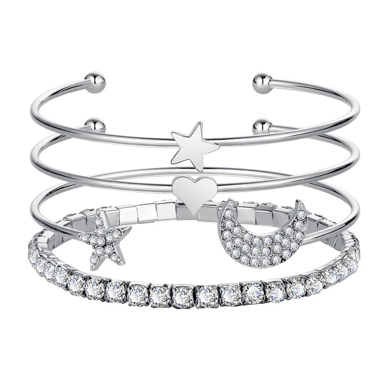 4 шт.компл. золотистые браслеты с подвесками и обручи с кристаллами для женщин, комплект женских ювелирных изделий в виде сердца и звезд, оптовая продажа