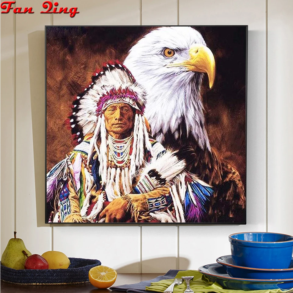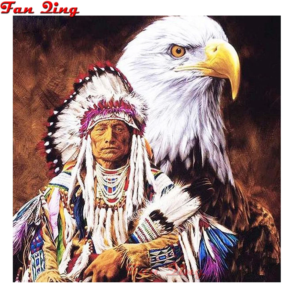 Полный квадратный круглый 5D DIY Алмазная картина Американский Родной Индийский для мужчин орел Алмазная вышивка новая вышивка крестиком рукоделие мозаика