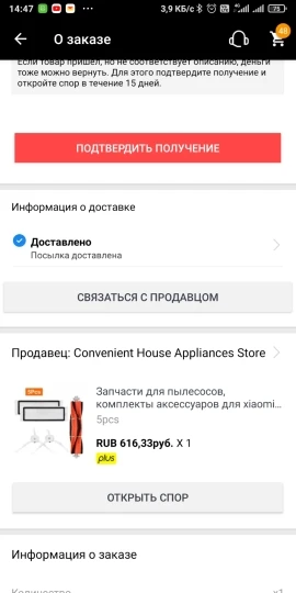 Заказывала комплект запчастей для робота пылесоса, но видимо что то пошло не так и где то в поднебесной перепутали посылки... В итоге мне пришли 2 фары) связалась с продавцом, он общительный, не смотря на то что у меня не сохранилась упаковка, в которой приехала посылка, он согласился на возврат и закрыл мой спор. Продавец честный, не кидает, входит в положение и предлагает варианты решения проблем всегда, рекомендую его магазин! А запчасти закажу ещё раз)