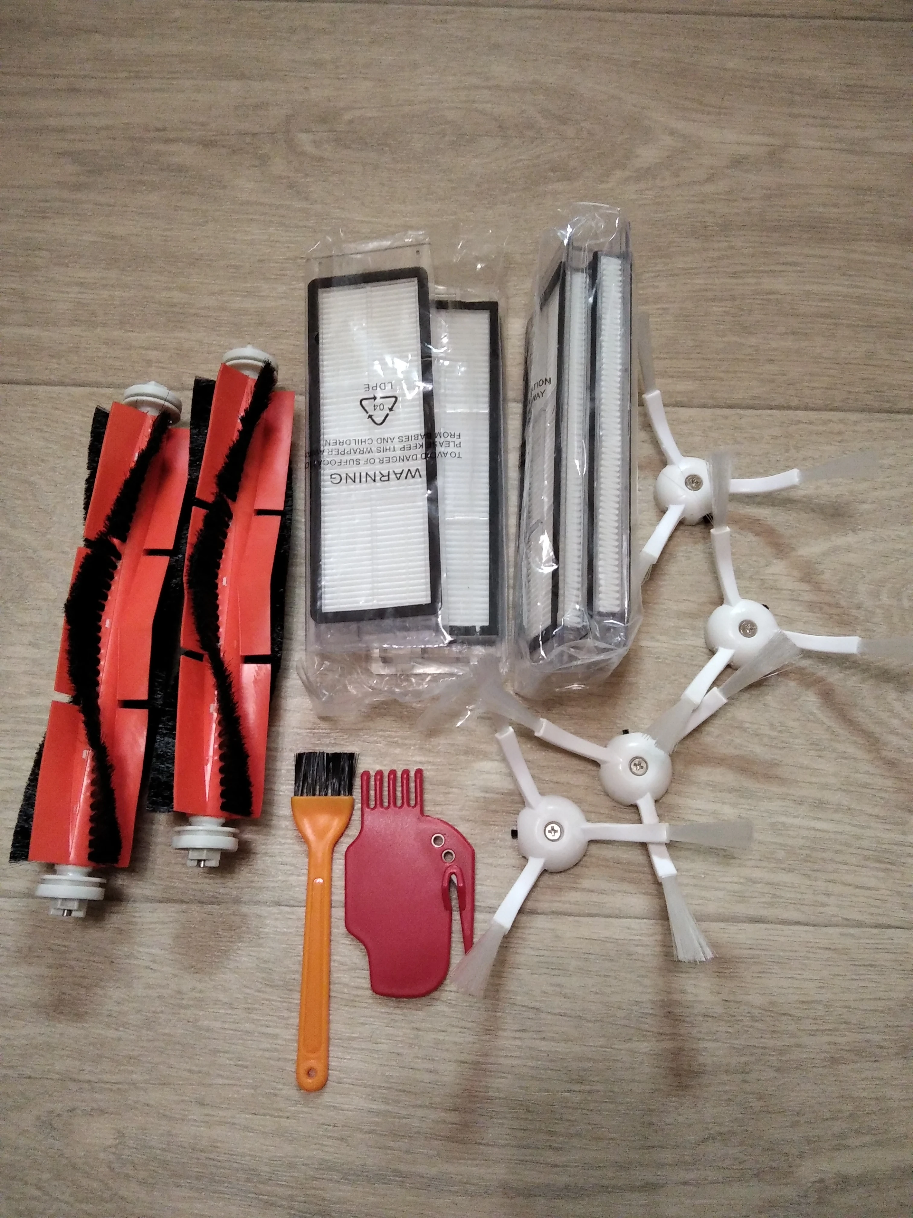 Посылка входит:12 шт. аксессуары для подметальной машины2 х основные щетки4 фильтра4 х боковые щетки1 х лезвие1 расческа7 шт. аксессуары для подметальной машины1 х основные щетки2 х фильтра2 х боковые щетки1 х лезвие1 расческа