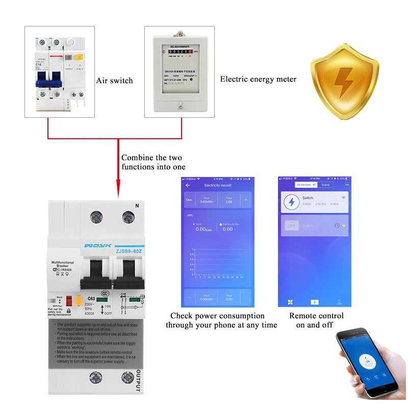 1p 18 мм wifi автоматический выключатель с измерителем мощности wif...