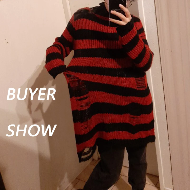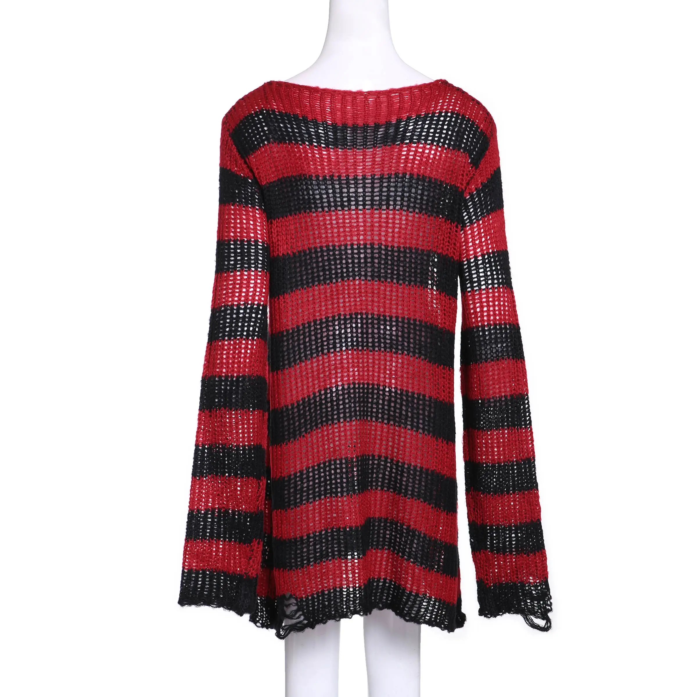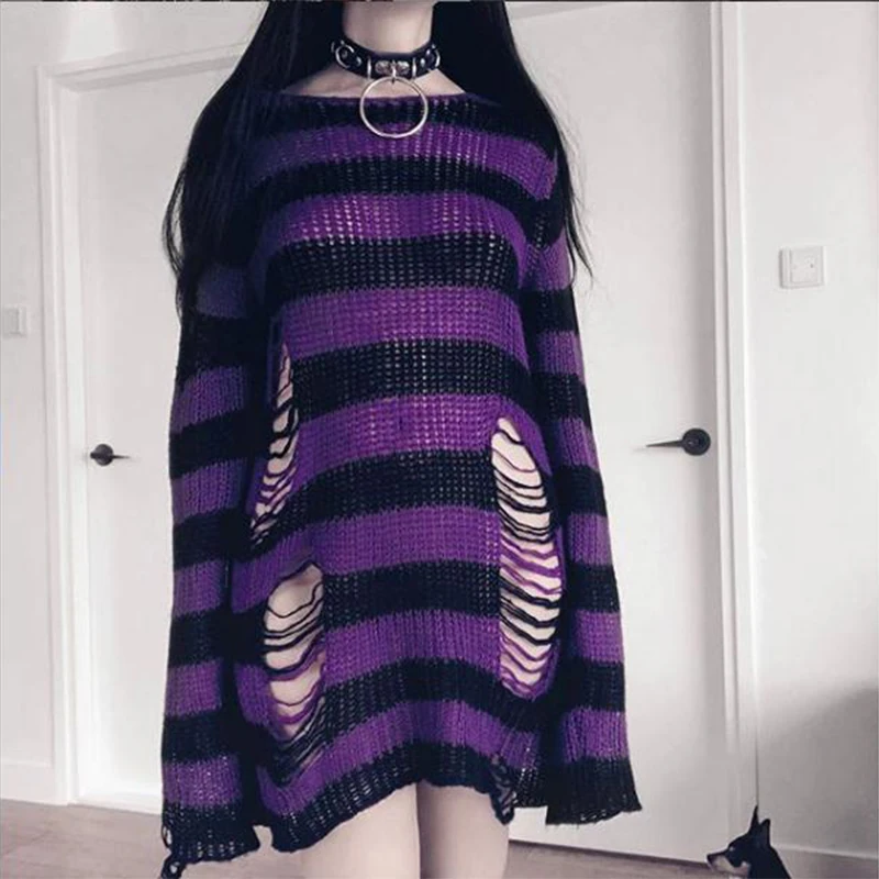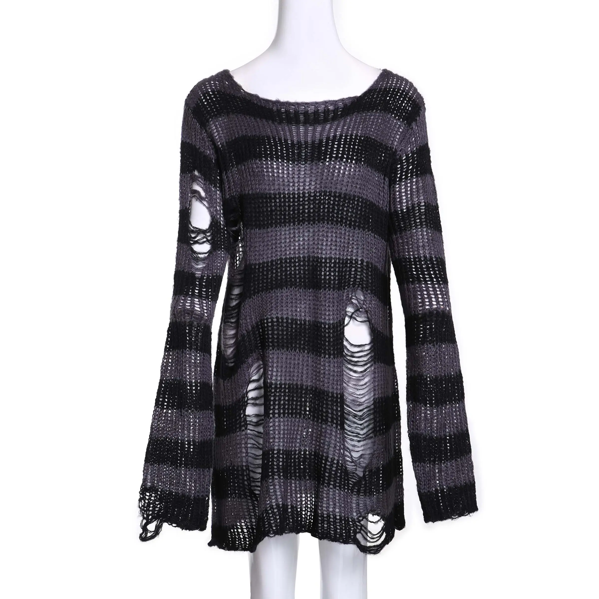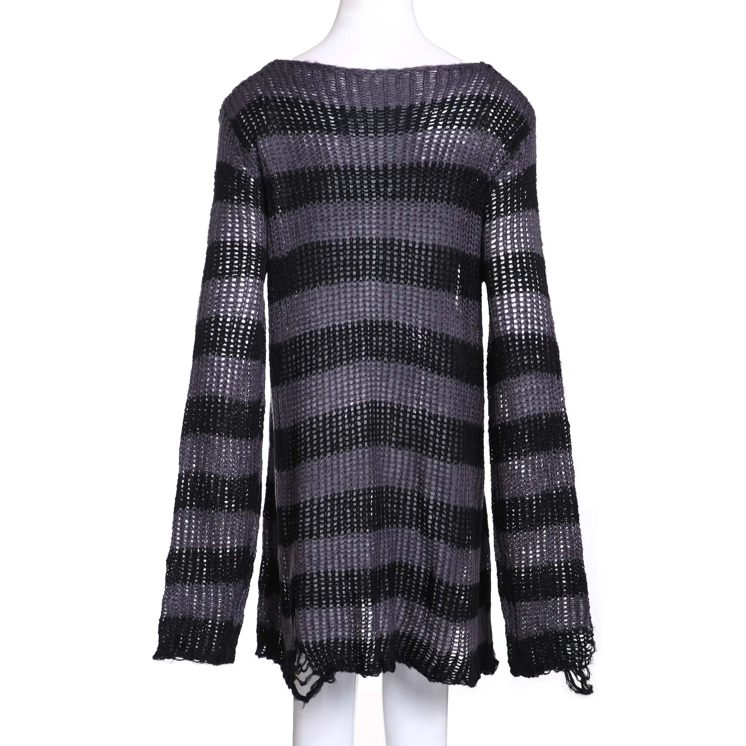 Rosetic женский свитер, готический вязаный свитер, женские длинные пуловеры, в полоску, свободные, зимние, рваные, плюс размер, свитера, джемперы, Mujer jersey