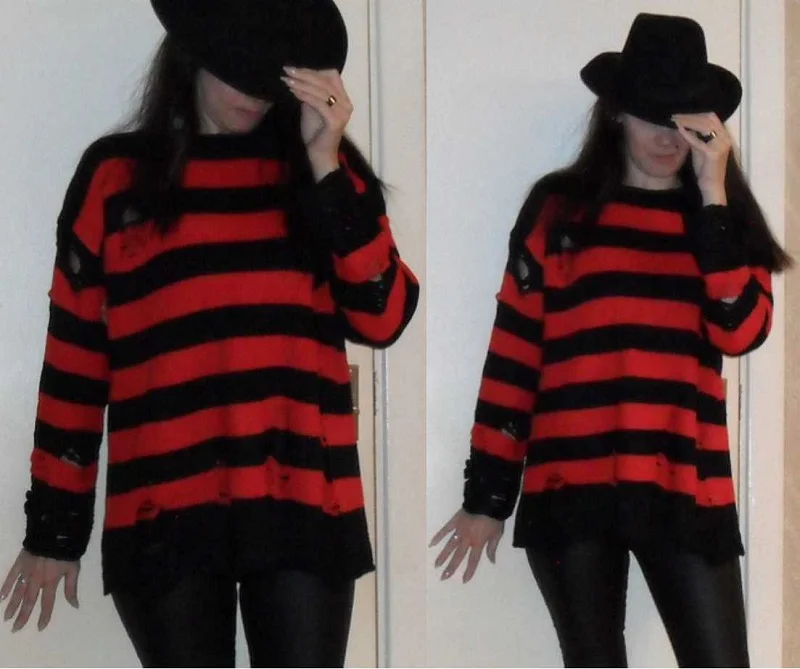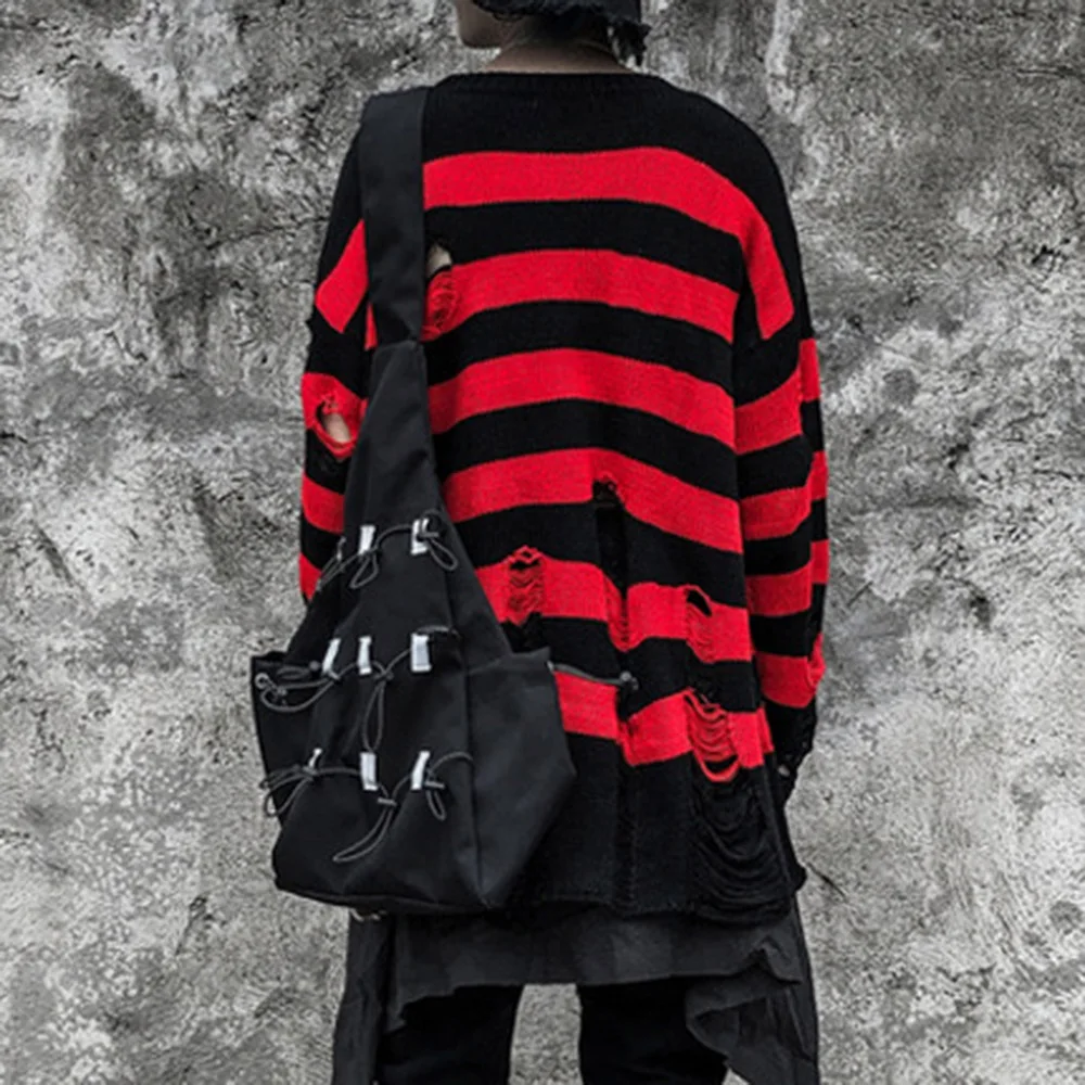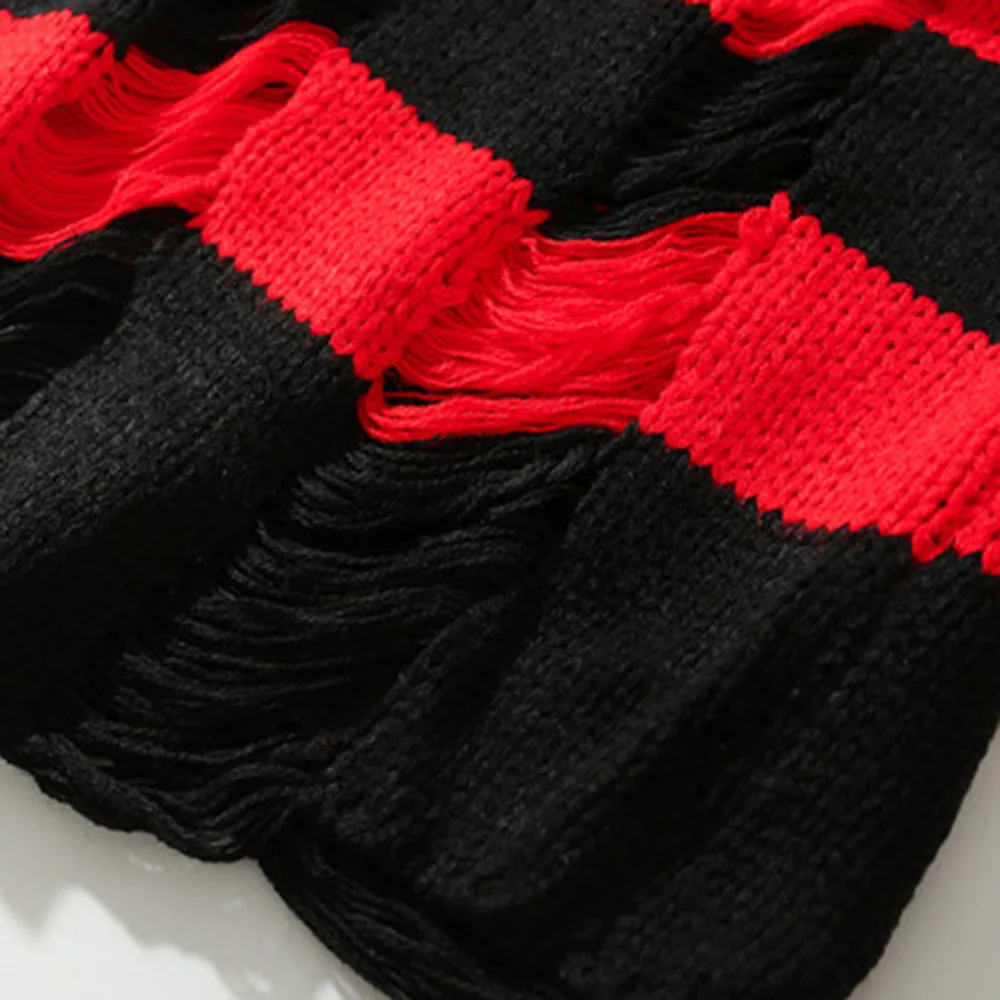 Женский вязаный свитер Rosetic, повседневный рваный пуловер в стиле пэчворк, пуловеры в готическом стиле, уличная одежда красного и черного цветов, 2020