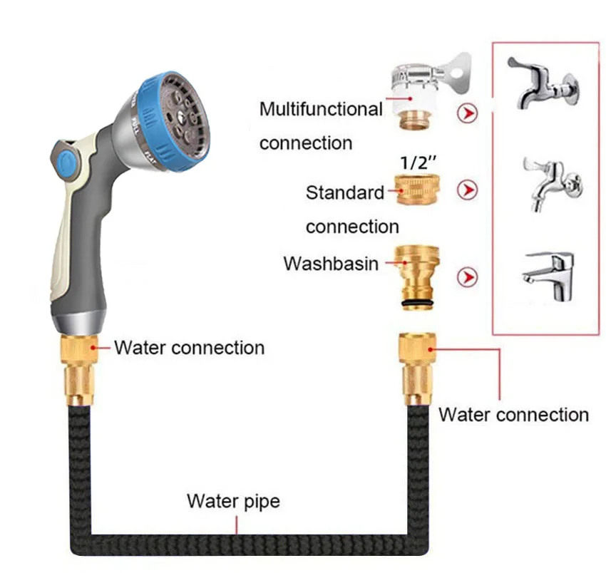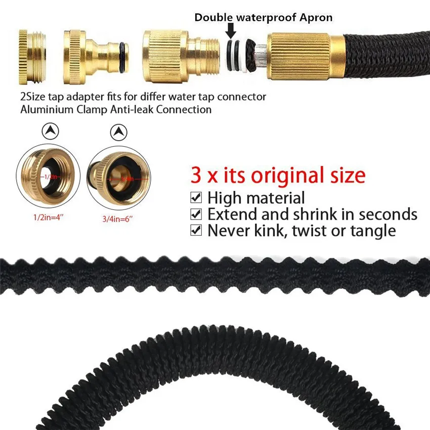 16-125ft садовый удлиняющийся шланг, шланг для воды, волшебный шланг высокого давления, гибкий шланг для полива, шланг для мытья автомобиля с распылителем