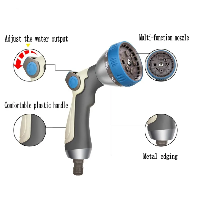 Название продукта: садовый водный шланг Материал: шланг:Трехслойная Толстая TPE внутренняя трубка + алюминиевое соединение + полиэфирная оплетка Пистолет: алюминиевый сплав