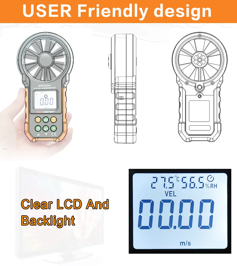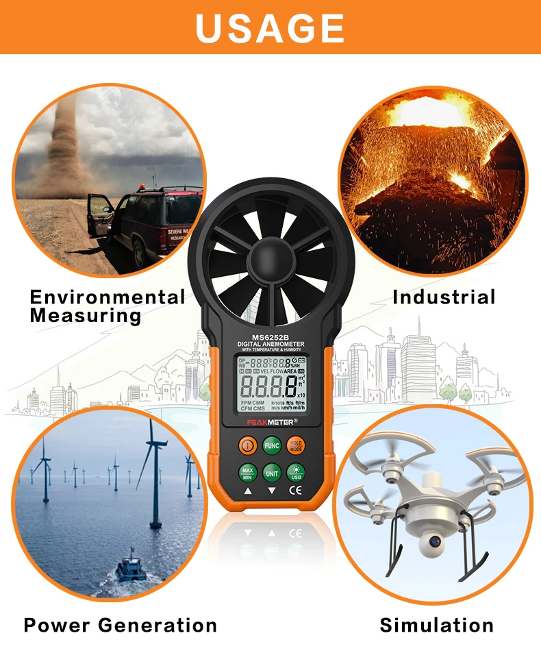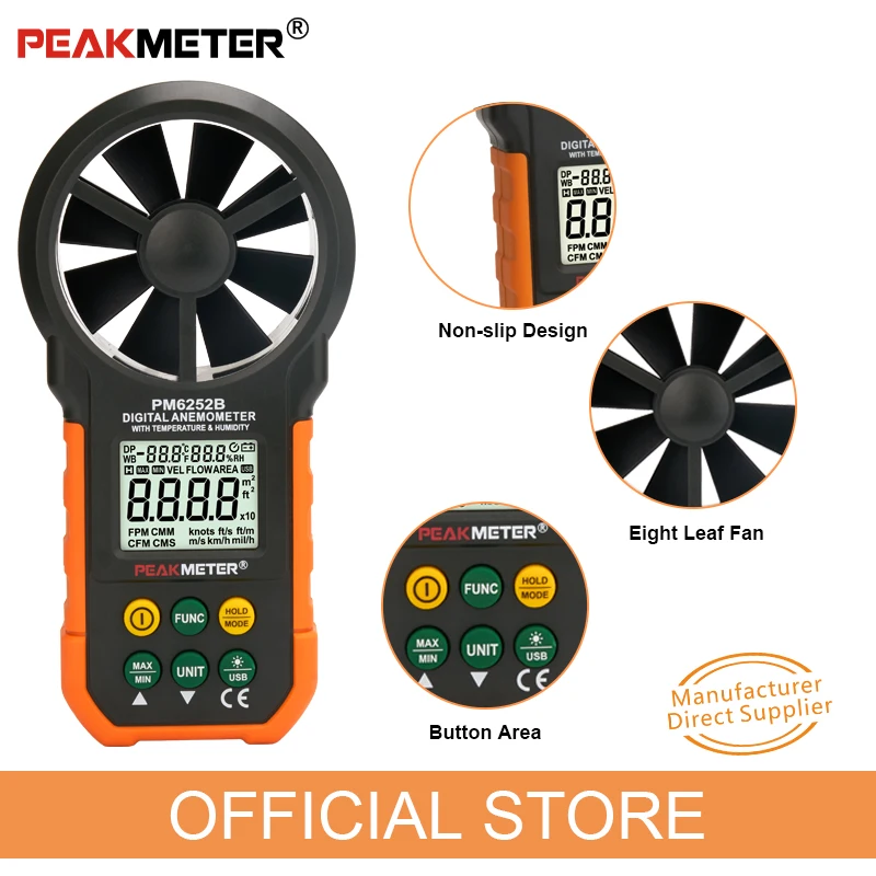 PEAKMETER цифровой анемометр ручной Высокоточный Измеритель Расхода Воздуха Прибор для проверки температуры и влажности PM6252B