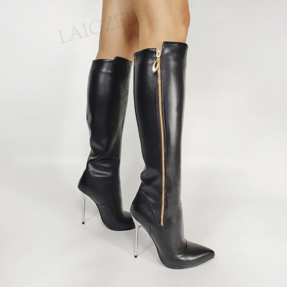 Женские сапоги до колена на металлической шпильке, из искусственной кожи, размеры 34, 38, 39, 43