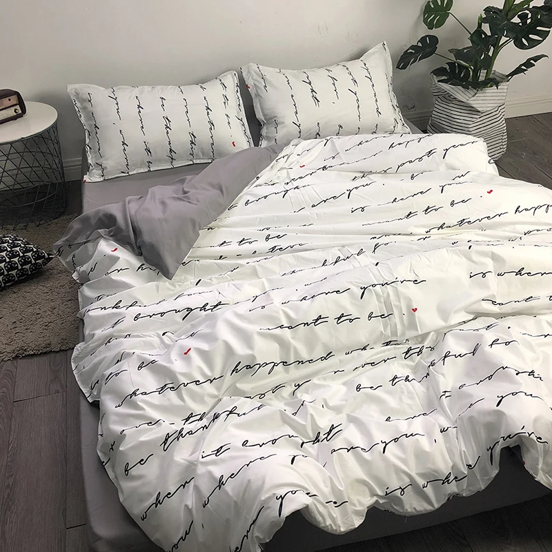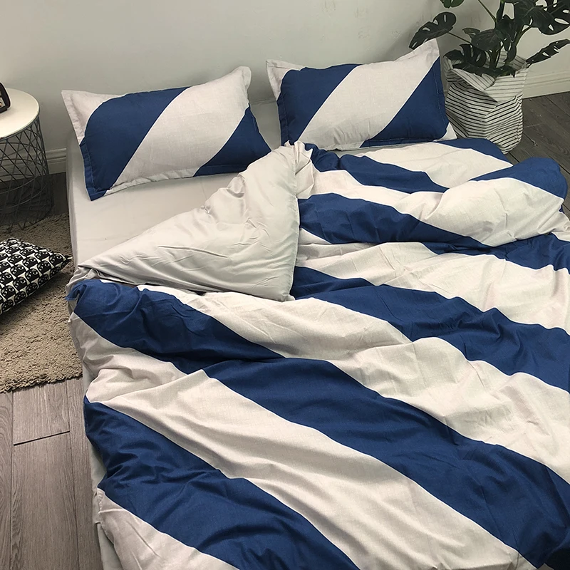 Комплект постельного белья из четырех предметов, черно-белого цвета, в полоску, 1,51,82,0 м, для одноместного студенческого общежития, 001