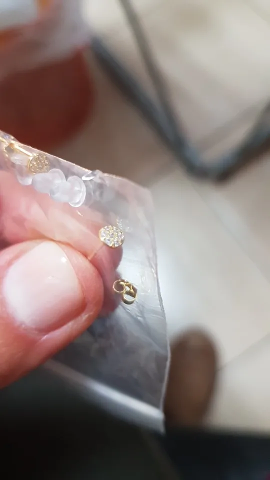 Серьги хранятся в маленькой пластиковой коробке, чтобы она не повредилась. Продавец добавил пластиковые застежки на случай, если другие потеряются. И он также добавил ткань, чтобы полировать деньги. Это очень мило с его стороны.