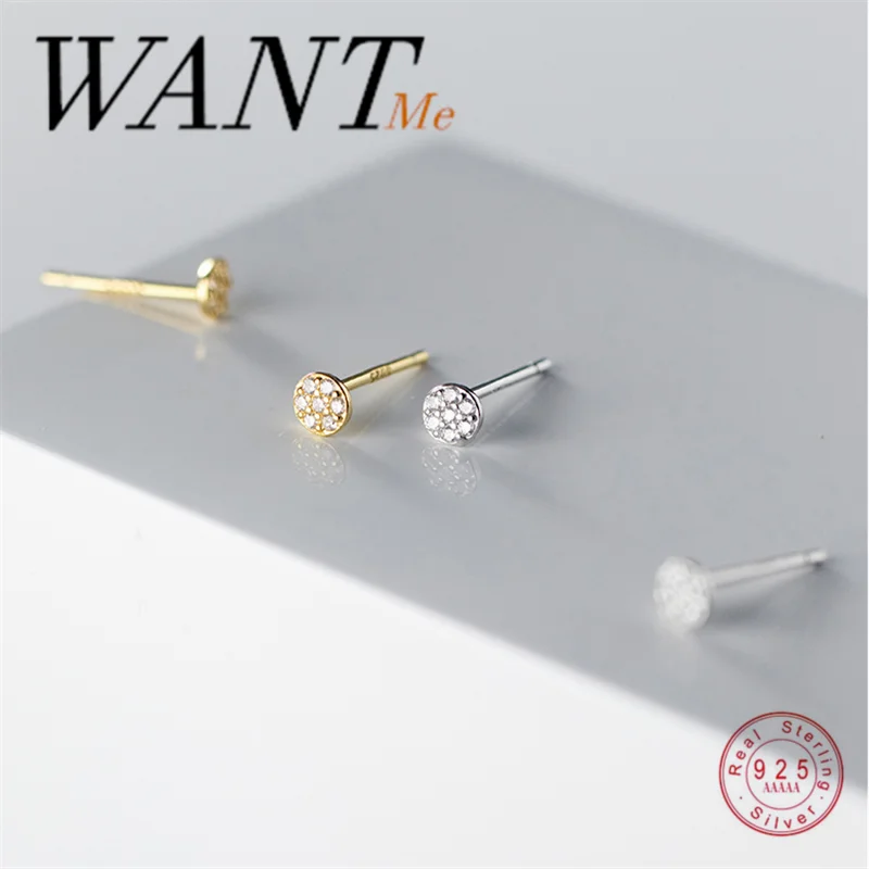 Серьги-гвоздики WANTME из серебра 925 пробы женские, минимализм, геометрические круглые миниатюрные украшения для ушей для студенток
