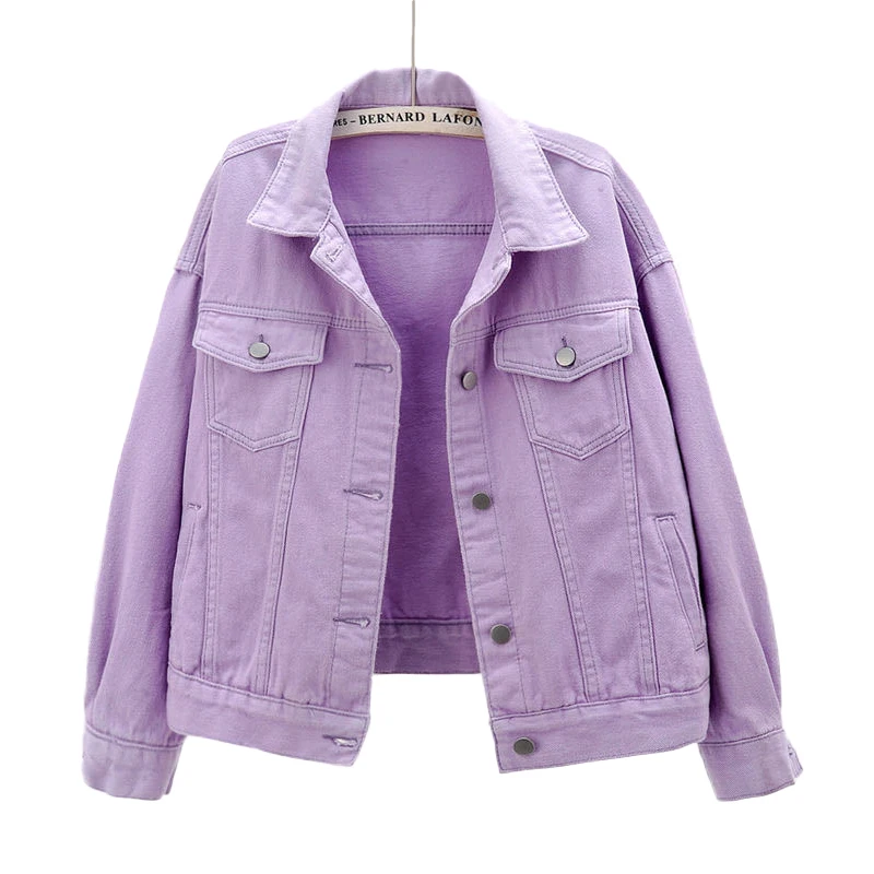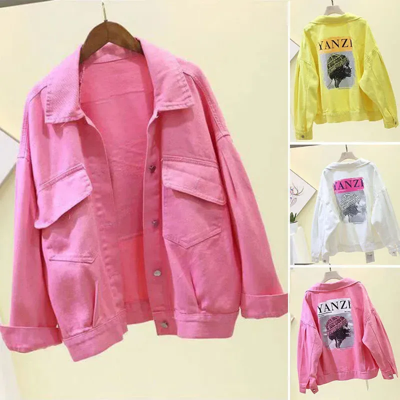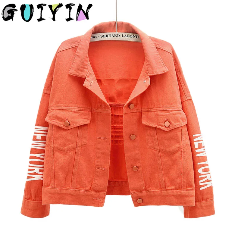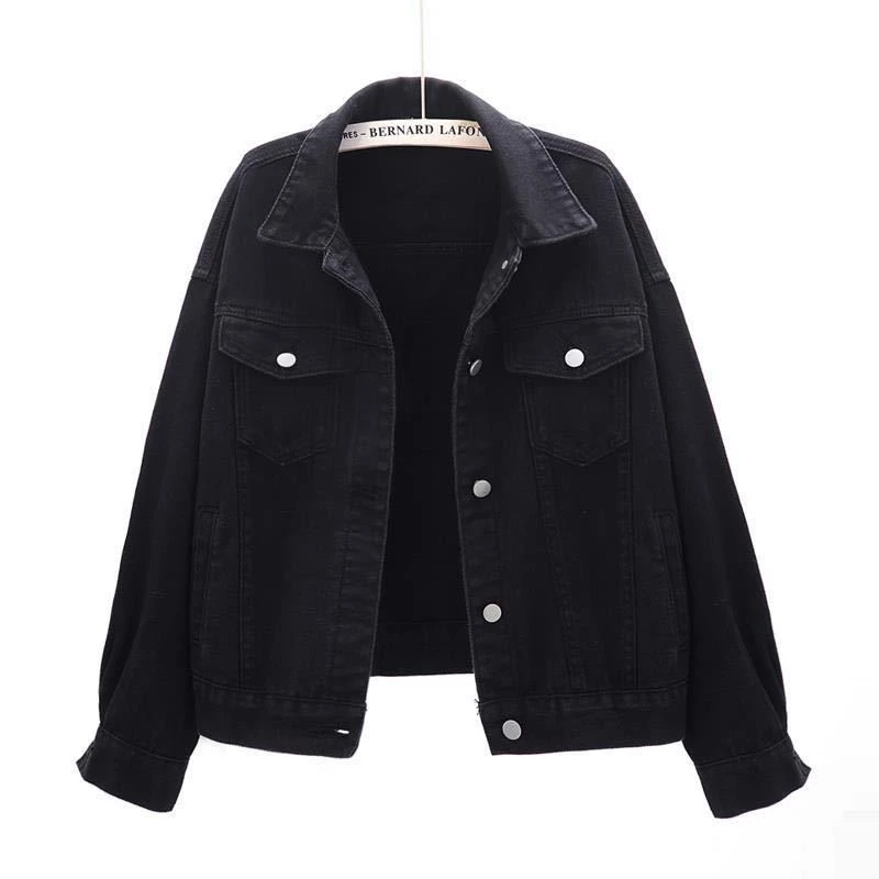 Женская джинсовая куртка с длинным рукавом, свободная черная короткая куртка из денима ярких цветов, Студенческая Повседневная куртка из денима, весна-осень 2021