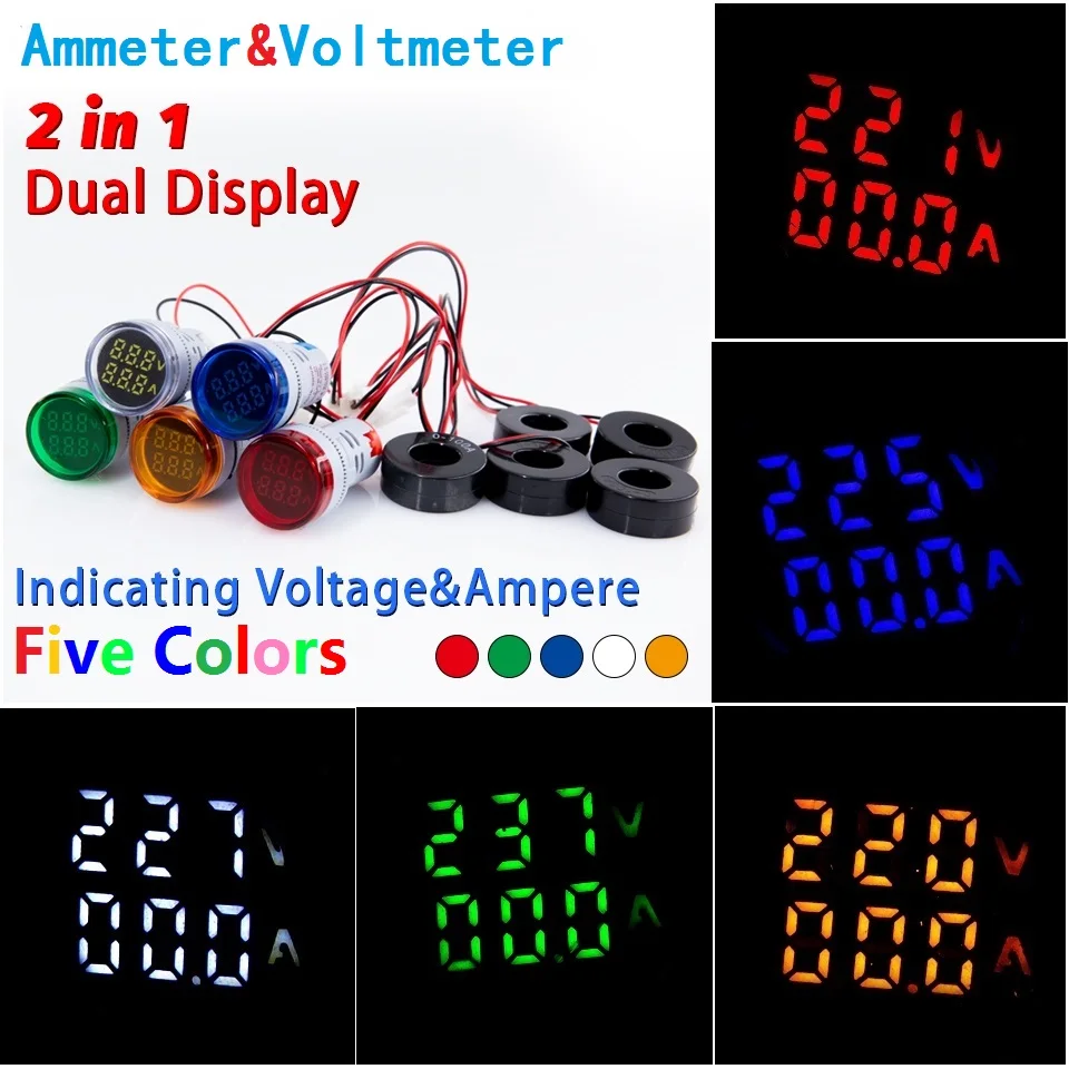 Вольтметр, амперметр, мини-цифровой, 22 мм, диапазон измерений 0-500 А, 20-В переменного тока