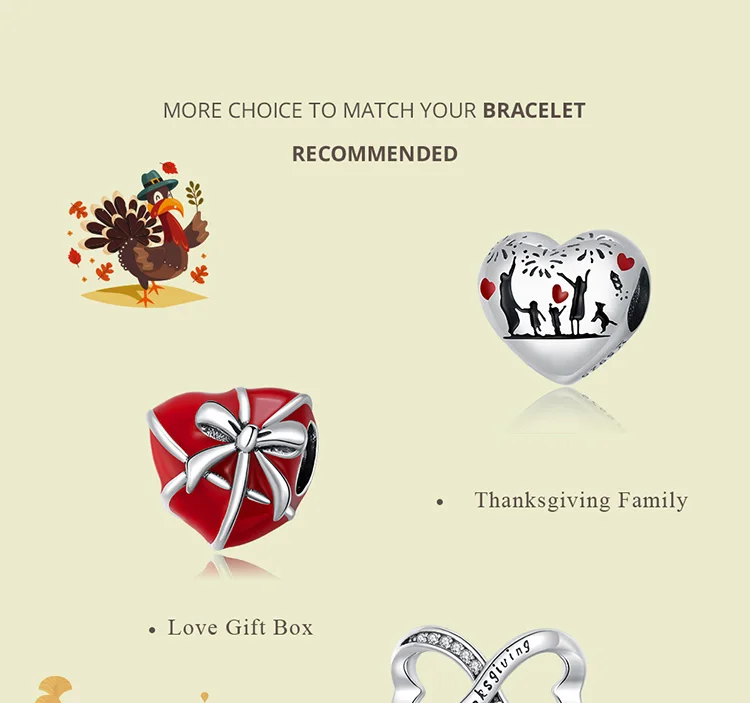 Bamoer Настоящее 925 пробы серебро благодарения Семья Шарм для брас...