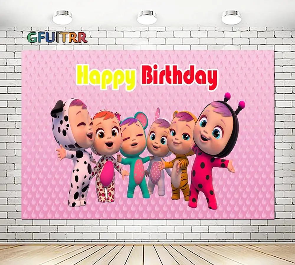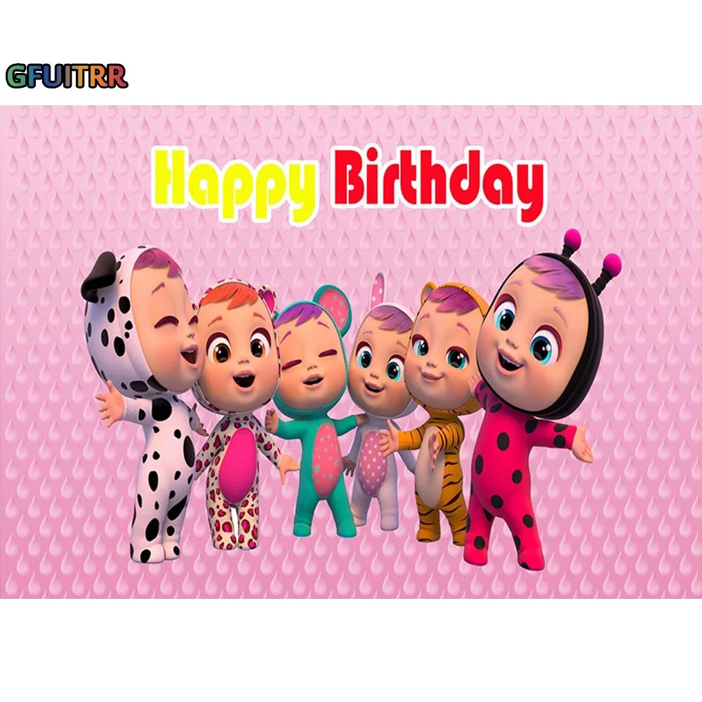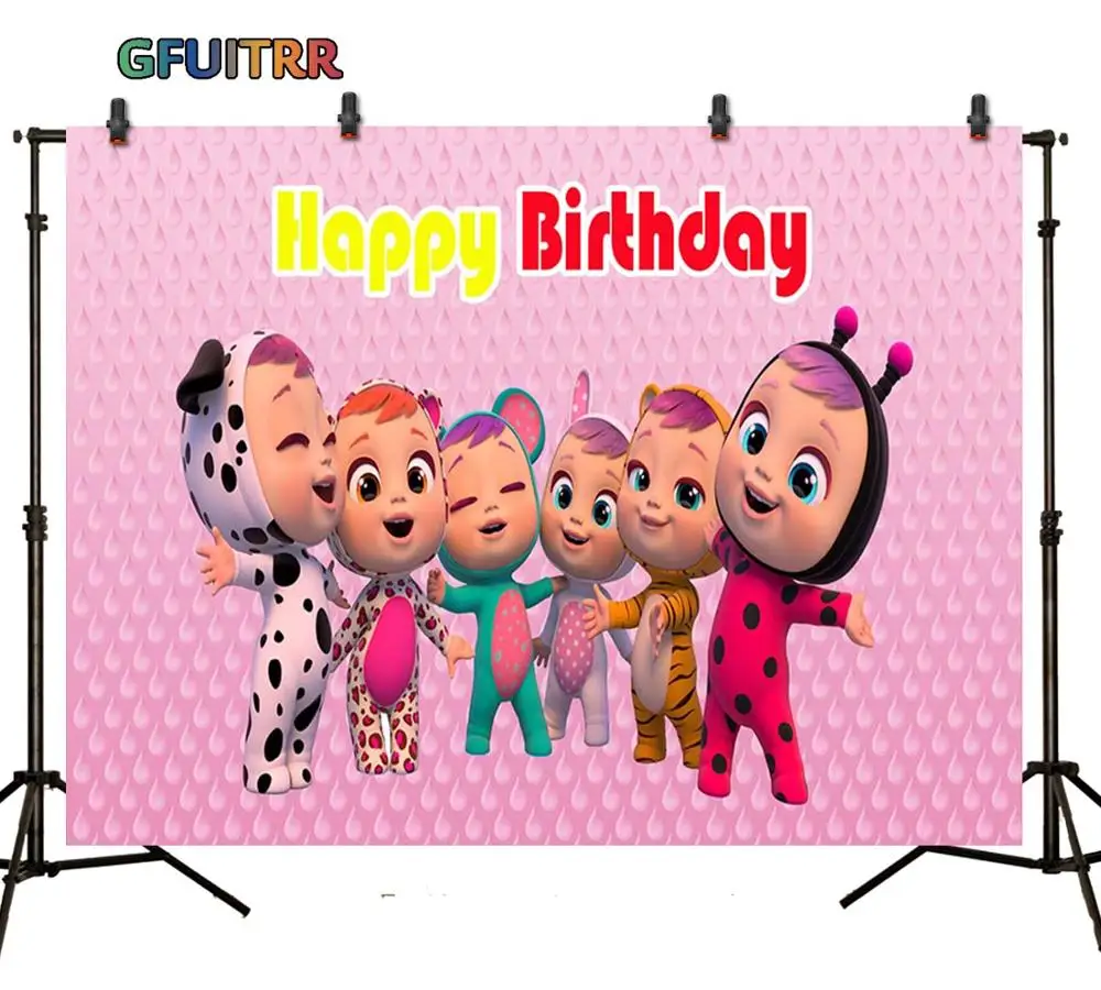GFUITRR крик младенцев Magic слезы фон розовый игрушка Долли фон детский день рождения вечерние Photo Booth студии виниловый баннер