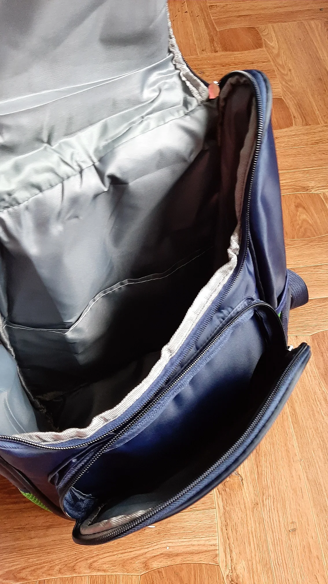 Отличный рюкзак!В 2019 г. брали такой же (у др. продавца) р-р S. Сын проходил 2 г. с ним, вид нормальный сохранился.Сейчас взяли р-р М,он побольше,прям хорошо вмещаются альбомы формата А4, цв.бумага/картон.Внутри 1 большой отдел и кармашек для тетрадей.Спереди отдел на замке большой, пенал вместится огромный или ланчбокс.Там же маленький замочек вертикальный (использовали для ключей;можно тел-н небольшой поместить).По бокам карманы для воды/салфеток влажных.Есть светоотражающие элементы на боковых карманах,спереди на вертикальном замочке и наверху на ручке рюкзака.Спинка нежесткая,но и не совсем тряпочка,есть вставка плотная.После распаковки был запах, убрали на балкон, выветрится.Качество швов отличное!Замки хорошие,крепкие.Единственное замечание:на замкАх "собачки" в виде бантиков, а ведь портфель для мальчика. Придется заменить их.Доставка быстрая!Заказали 2 мая, продавец сразу отправил.23 мая уже пришел товар в Калининград.Очень довольны покупкой.Спасибо продавцу!