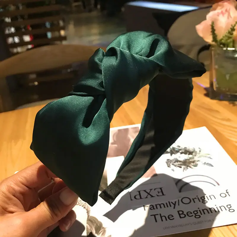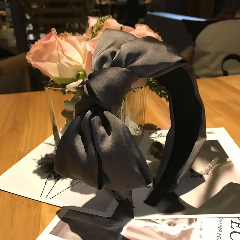 Повязка на голову Женская атласная, с бантом, в стиле ретро
