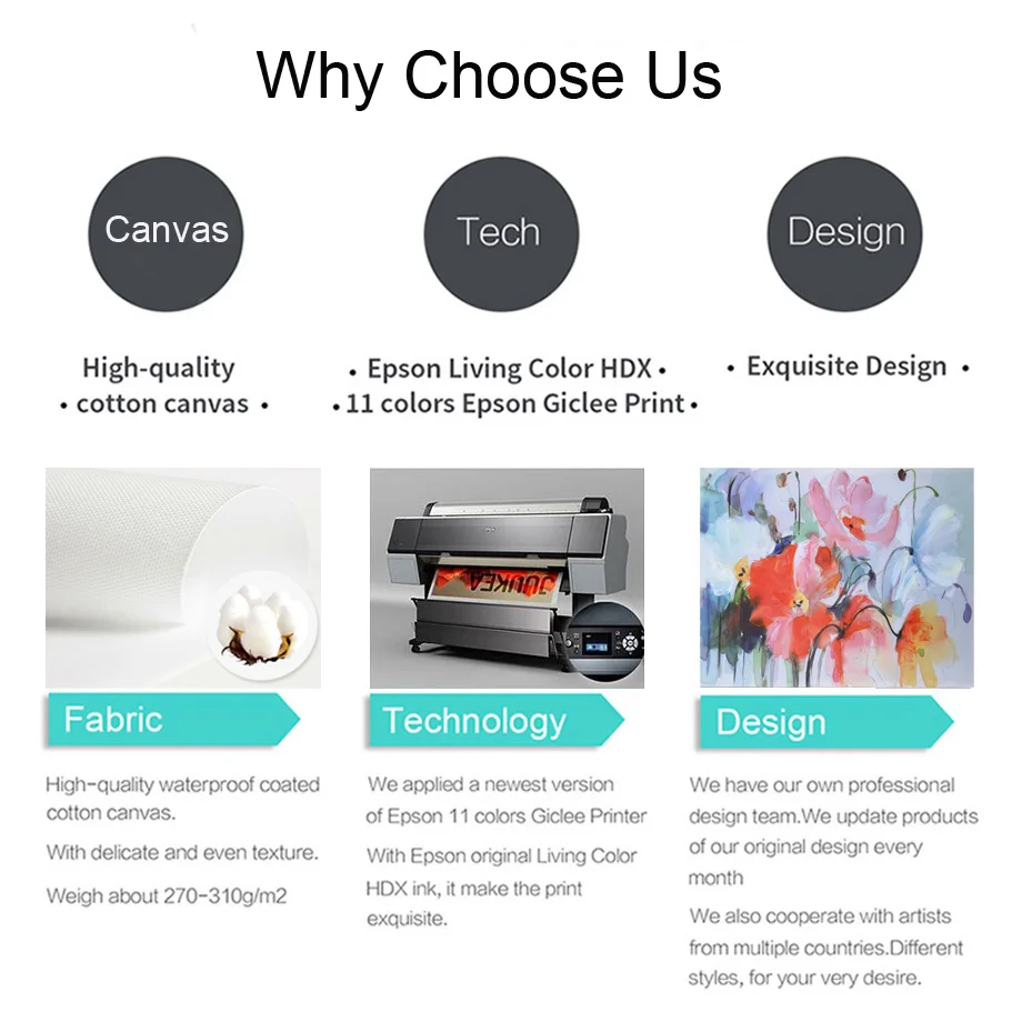 4. Этот холст отличного качества без внутренней и внешней рамки, чтобы сохранить стоимость доставки, но этот размер является обычным размером фоторамки, и вы можете легко получить готовую рамку.