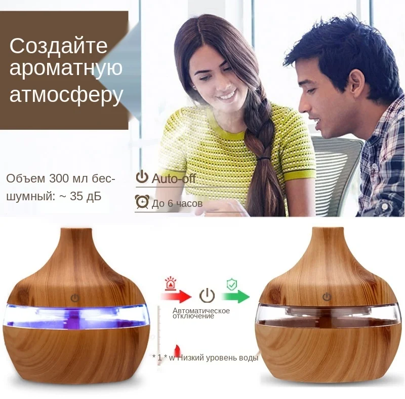 воздуха 300 мл Увлажнитель Электрический Ароматический диффузор туман древесное зерно масло Ароматерапия Очиститель есть 7 светодиодный ных ламп для автомобиля домашнего офиса