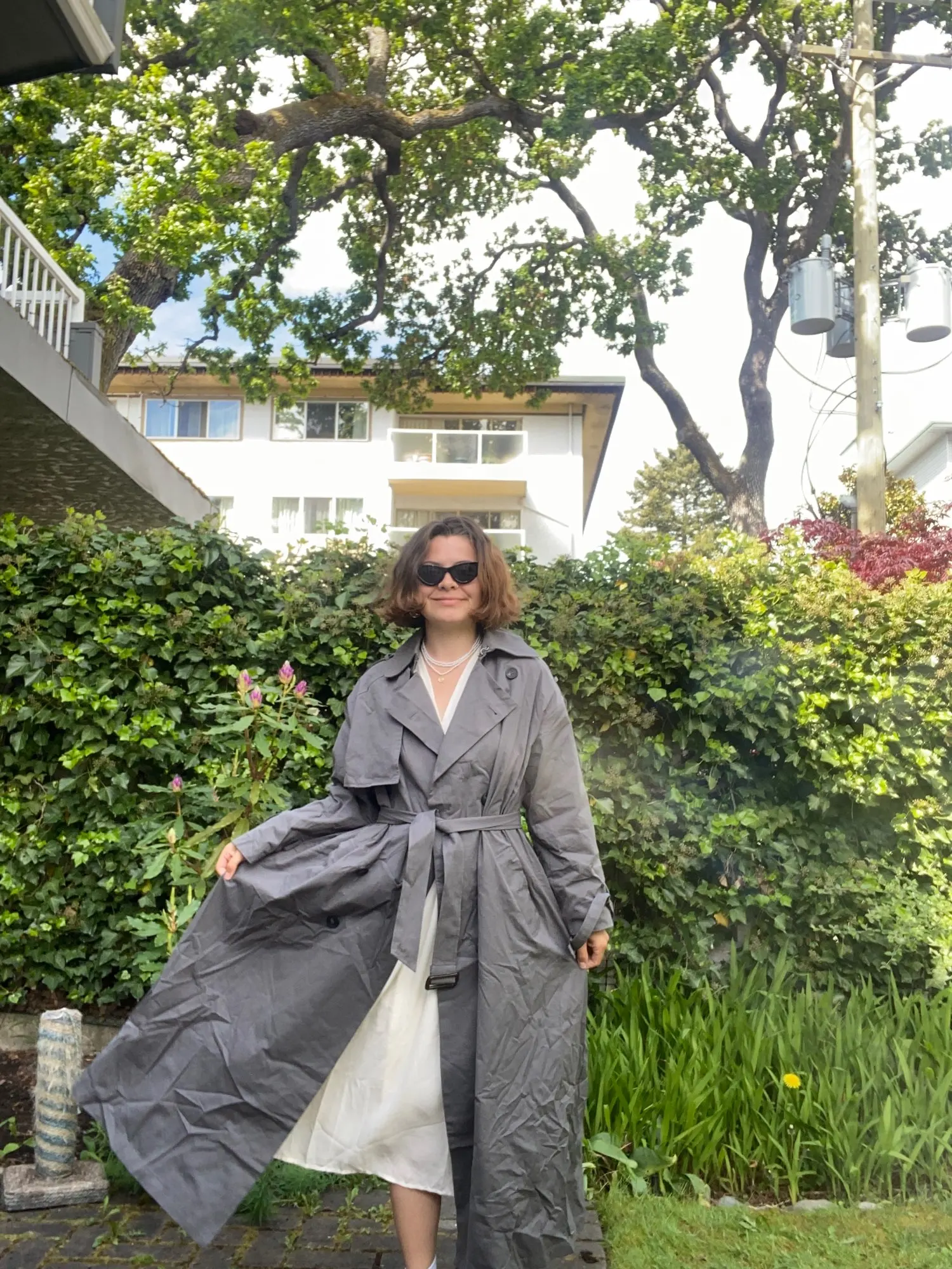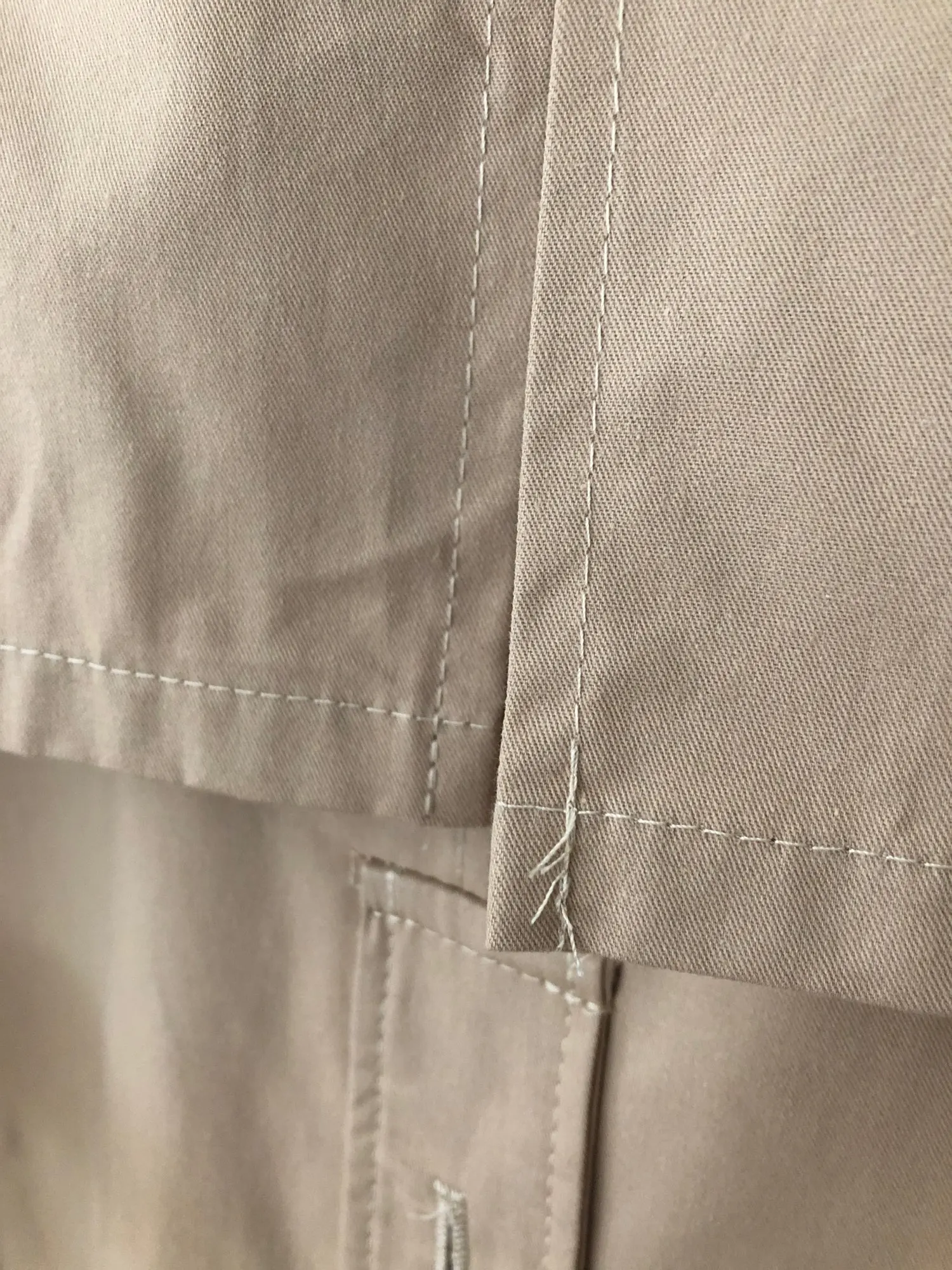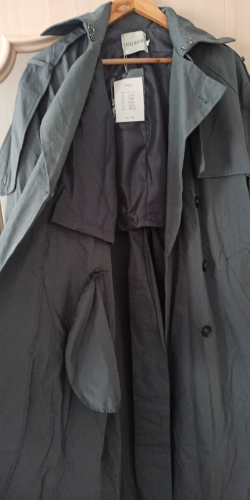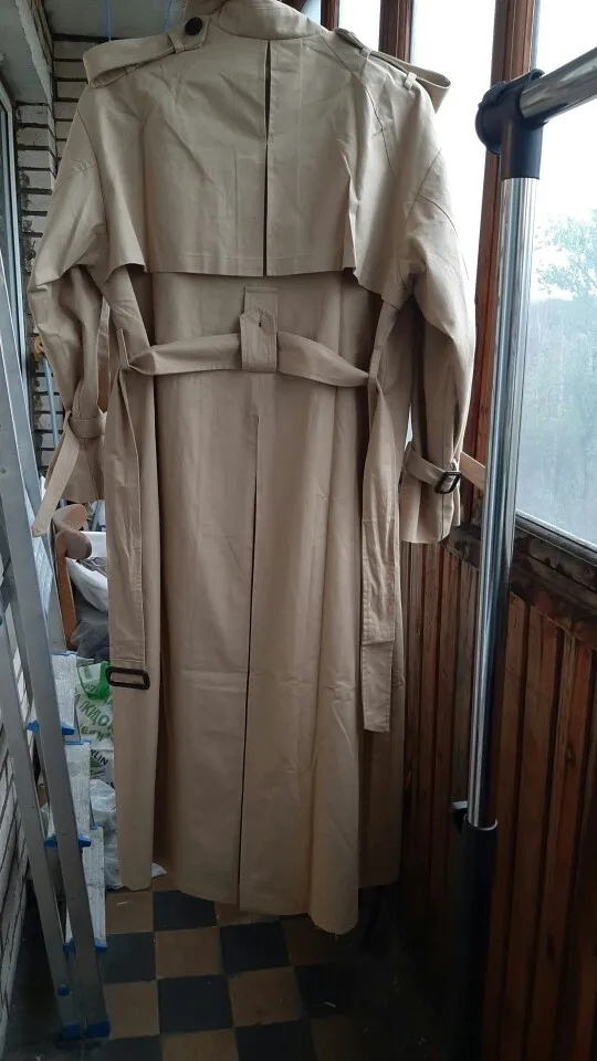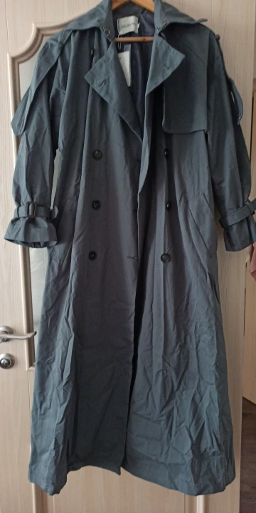 Плащ прийшов дуже швидко - за 15 діб. Усі шви рівні, нитки не стирчать - пошитий якісно. Тканина щільний котон, колір повністю відповідає фото, розріз так і є довгий (але то не проблема, якщо не подобається, можна застрочити), рукав по довжині нормальний. На мій зріст 165см - довжина супер, на параметри 89-74-90 розмір L занадто широкий, можна було брати M, але виглядає плащ бомбезно. Пізніше додам фото у ньому.