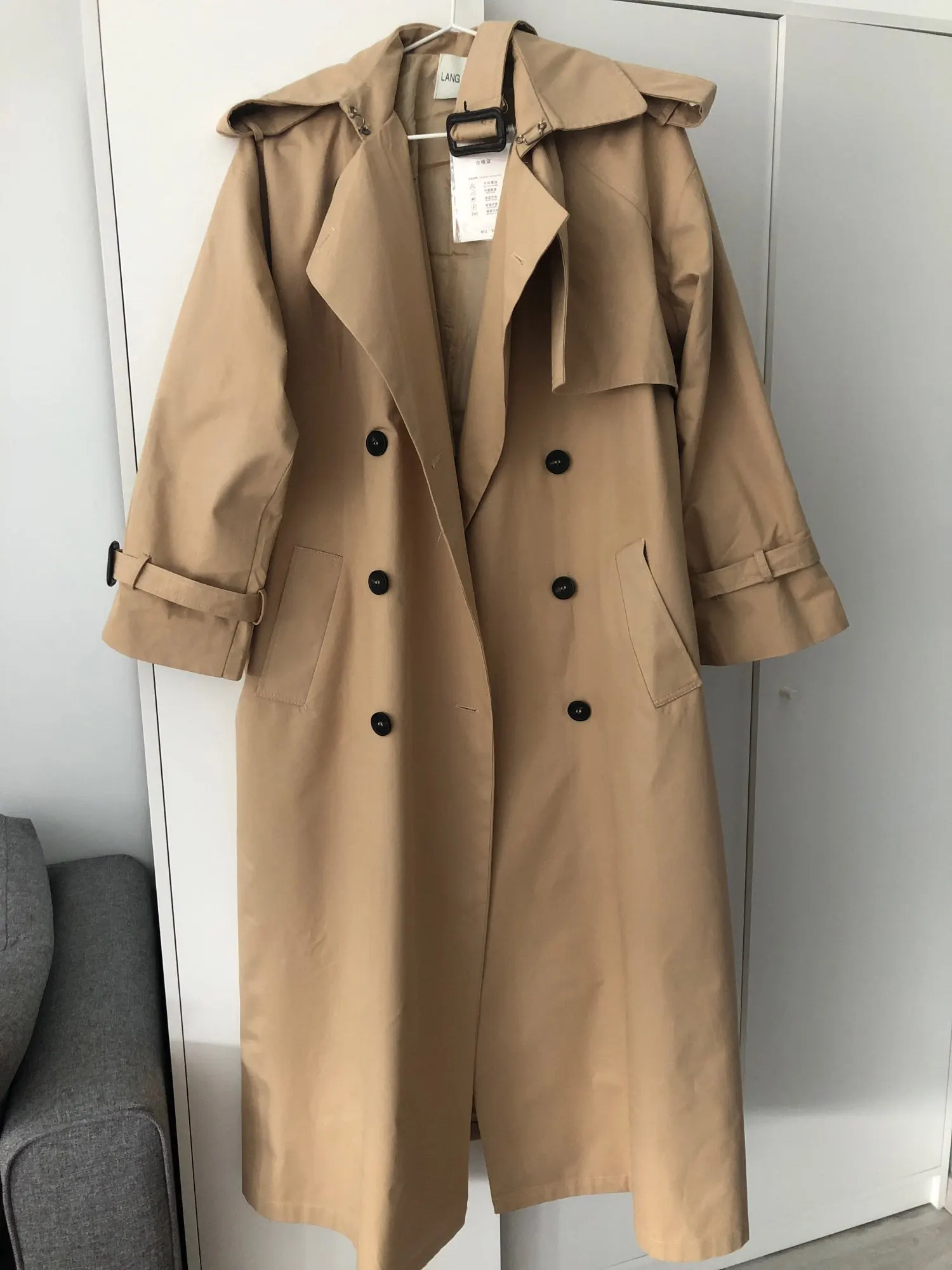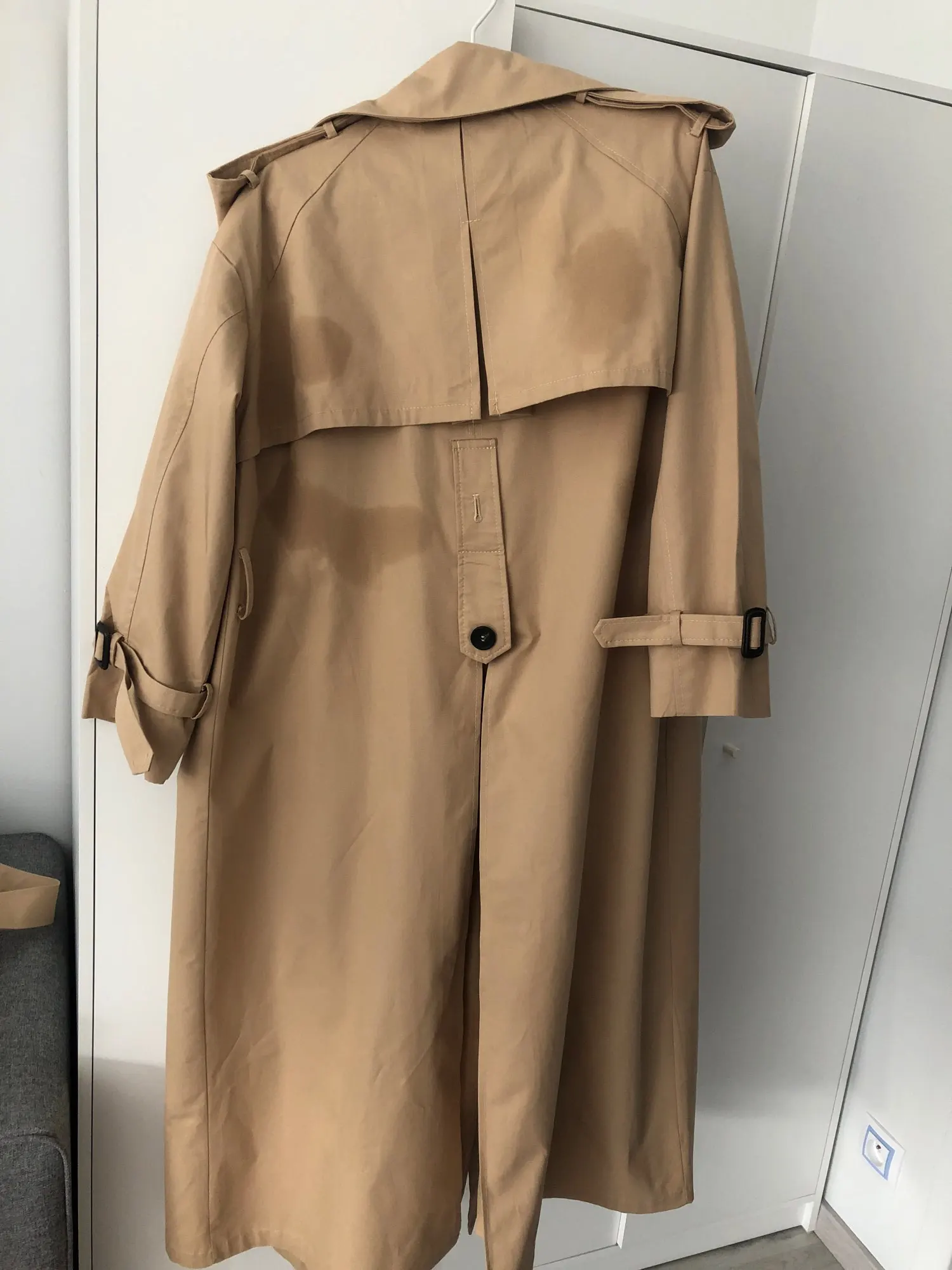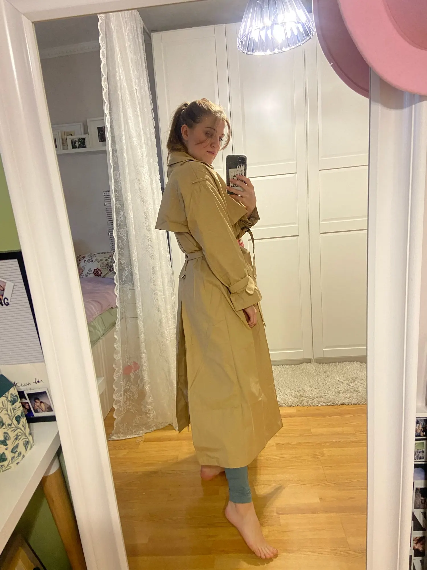 Офигенный тренч! Самая бытовая доставка за 7 дней до Московской области. Качество супер, материал приятный. Длина на рост 172 чуть ниже середины икры. На свой S купила S, оверсайз как и хотела. Рукава только коротковаты, но в общей массе выглядит норм. Очень рекомендую!